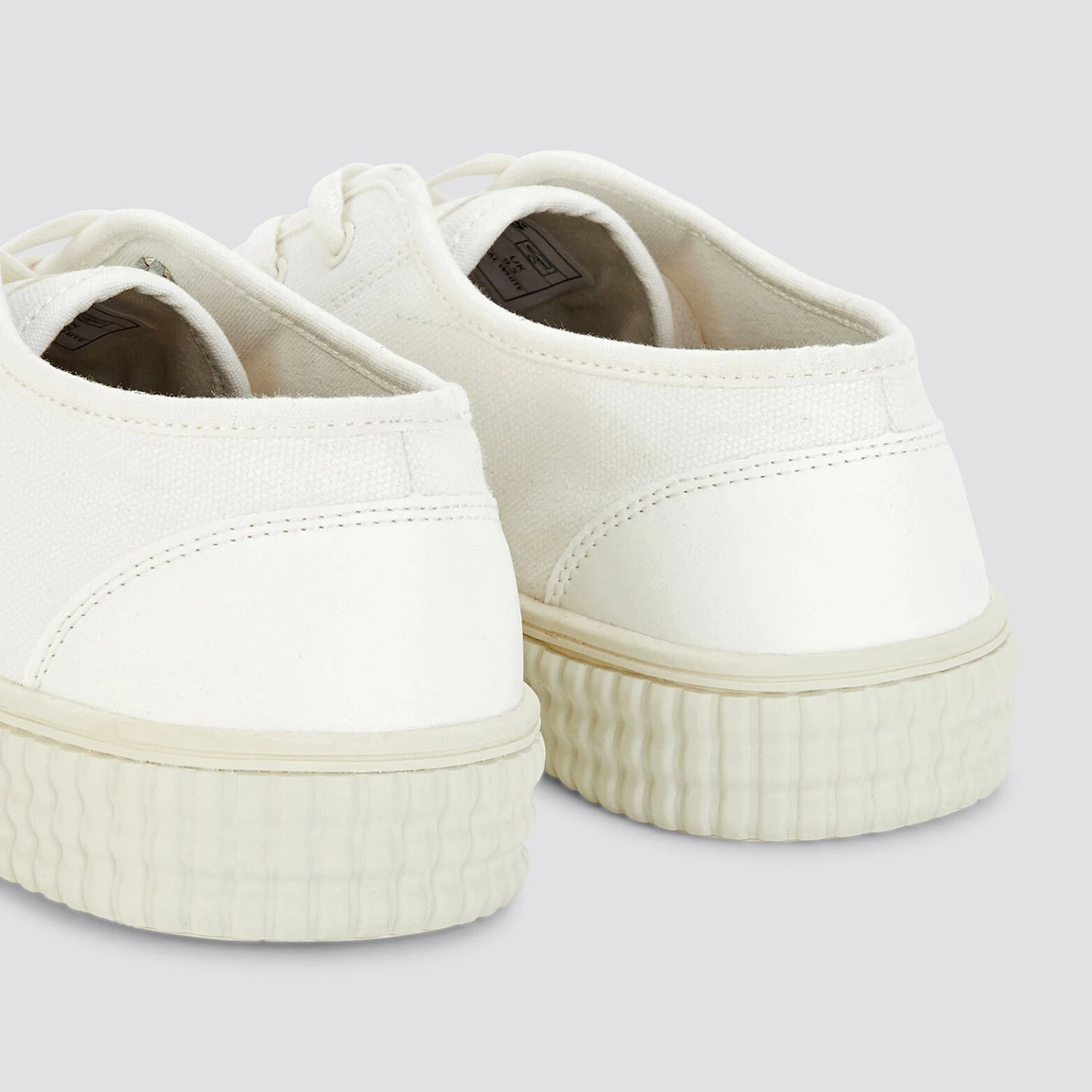 Ces baskets basses sont en toile unie blanche. Elles possèdent deux paires de lacets : une paire bleu marine et une paire blanche et conviennent à toutes les tenues.