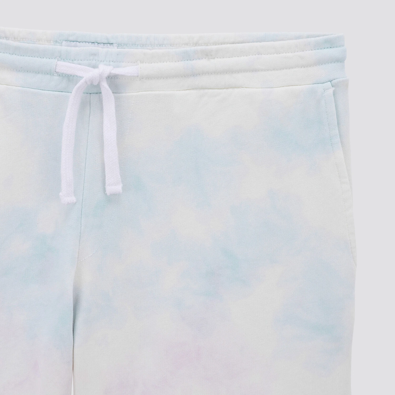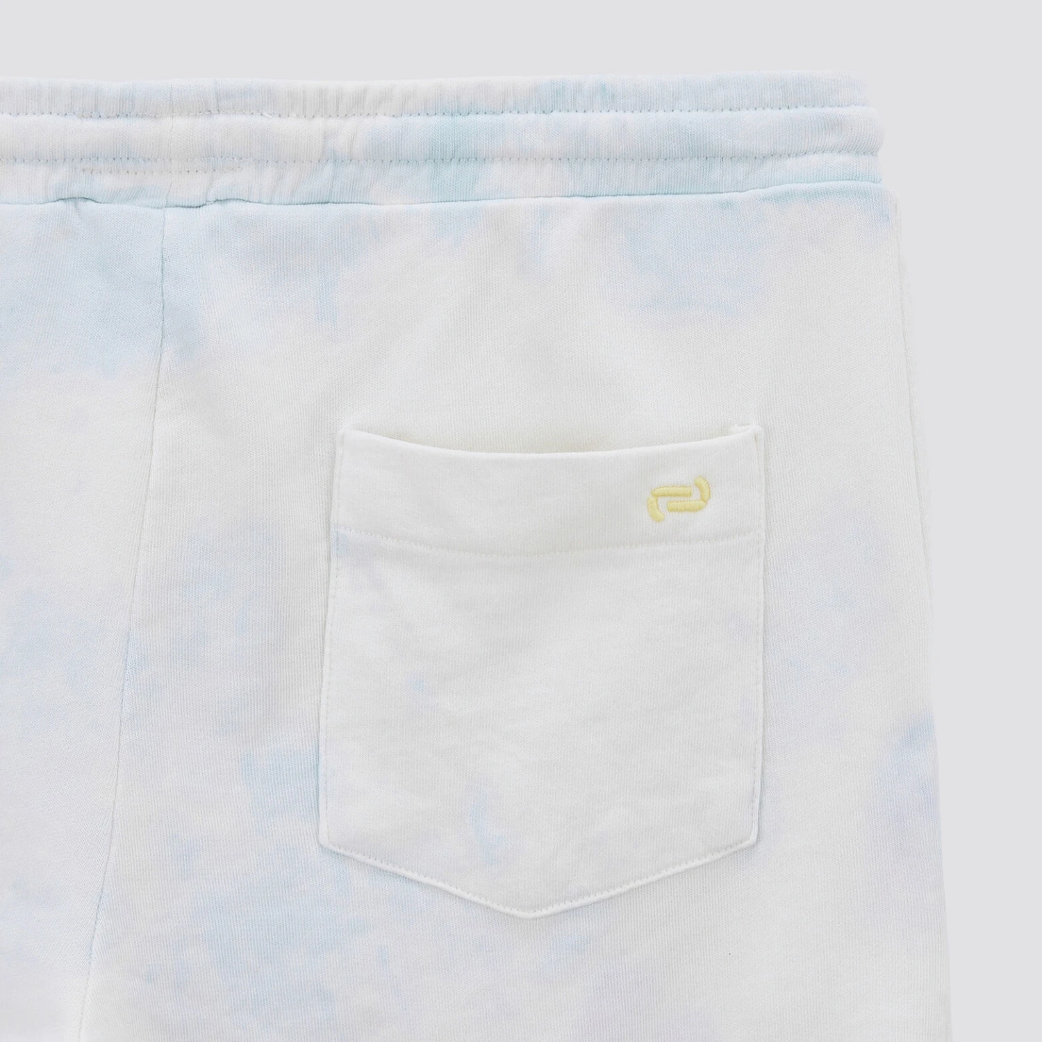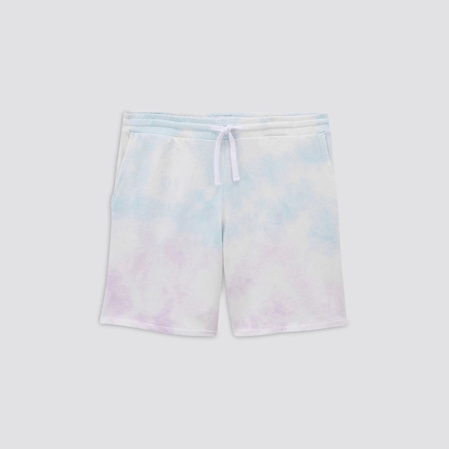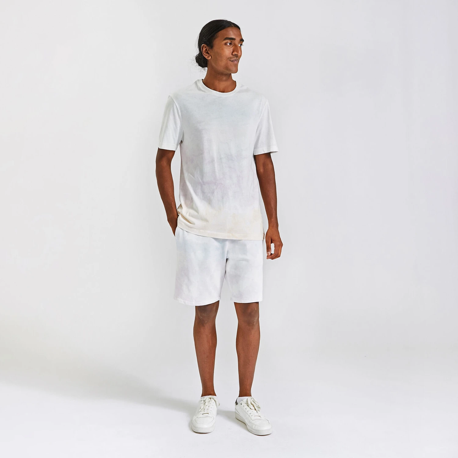 Ce bermuda en molleton tie and dye est doté d’une taille élastiquée avec cordon de serrage, de 2 poches italiennes avant et d’une poche plaquée arrière.