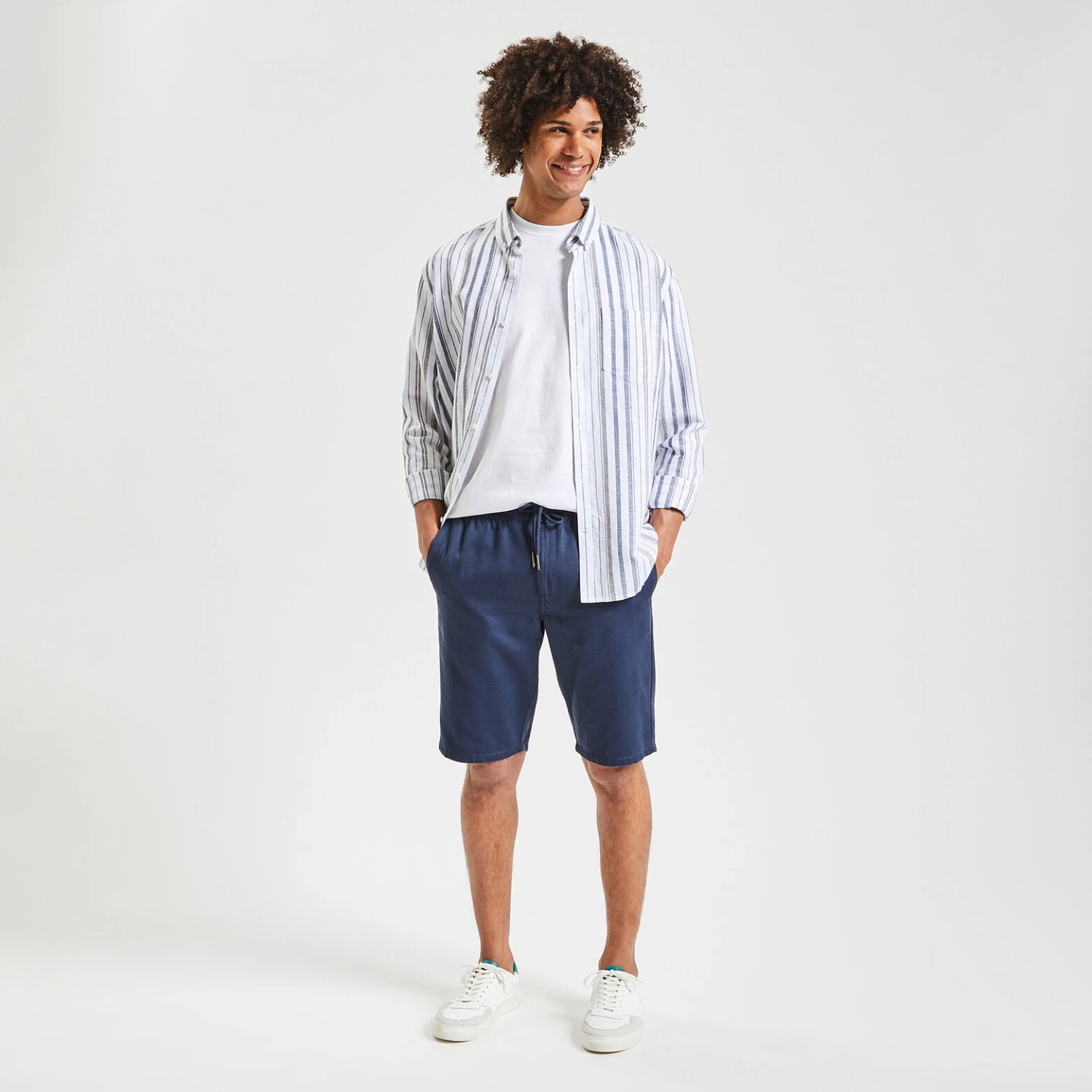 Ce bermuda en matière fantaisie unie offre un tissage irrégulier du fil qui donne du caractère à votre bermuda. Parfait pour la saison estivale, il peut se porter avec une chemise ou un tee-shirt.