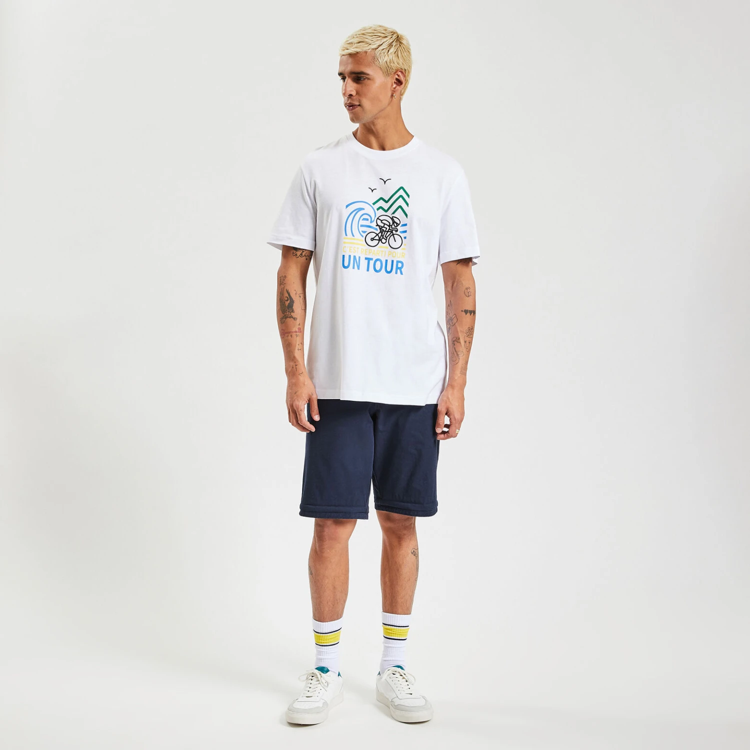 Depuis 2022 et encore pour 3 années, Jules devient fournisseur officiel du Tour de France et développe une collection capsule avec des t-shirts, des sweats, un bermuda, une chemise et des accessoires pour porter haut et fort les couleurs de cette grande fête populaire et festive. Pour cette collection nous avons essayé d’intégrer au maximum des matières recyclées ou issues de l’agriculture biologique.