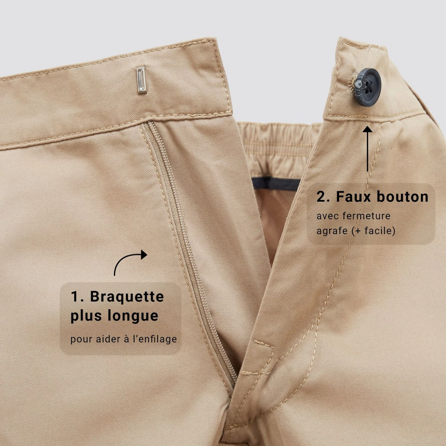 Basée sur une sélection de produits existants, cette gamme, issue de cette étroite collaboration, donne naissance à des vêtements plus conforts et plus faciles à enfiler : des tailles élastiquées, des boutonnages aimantés, une ergonomie entièrement revue…