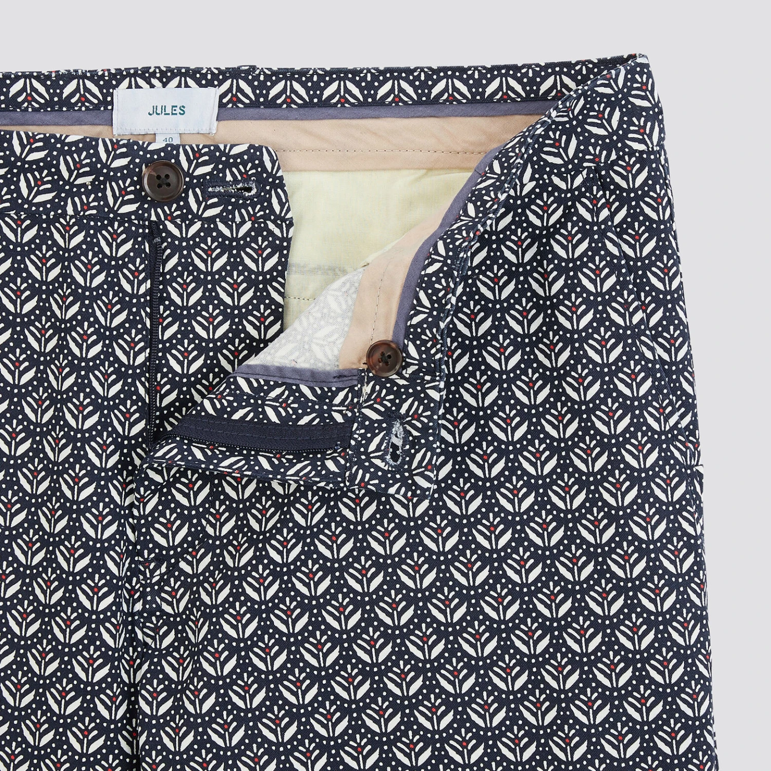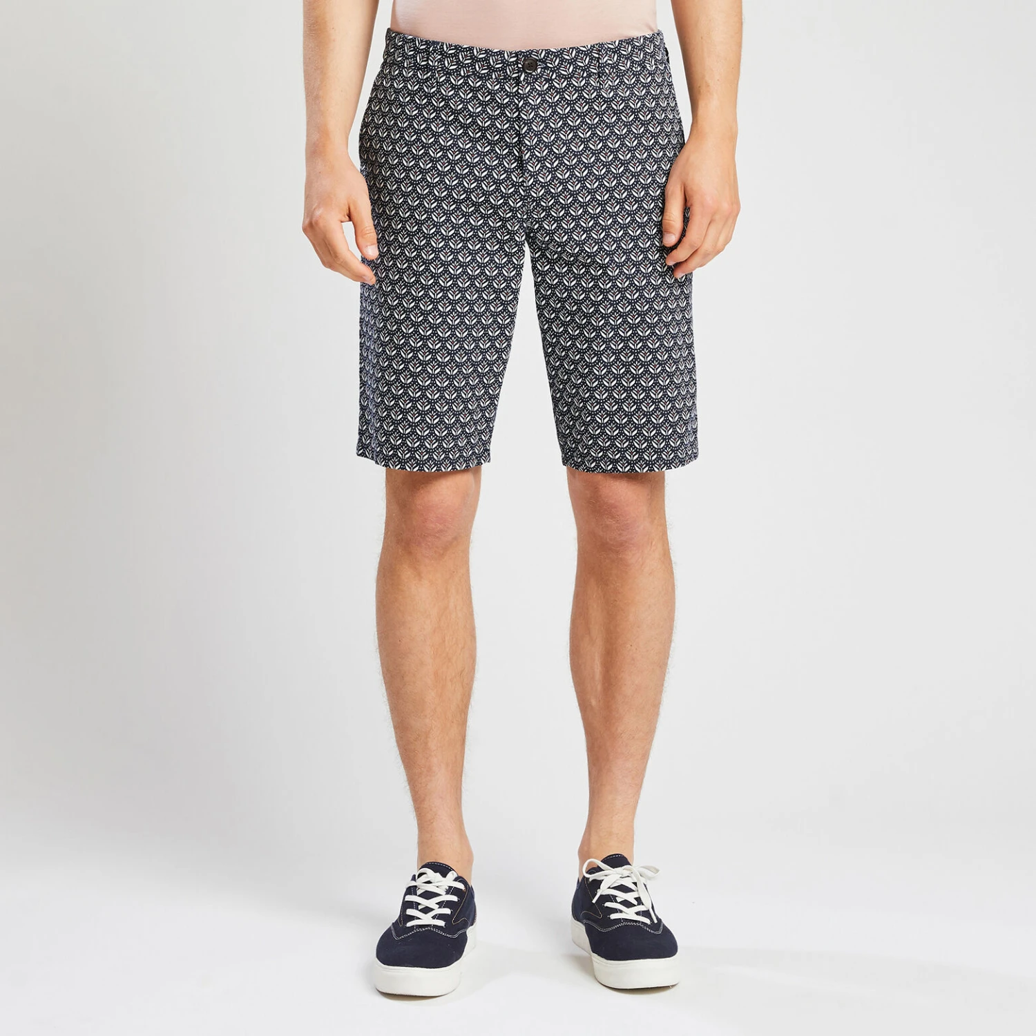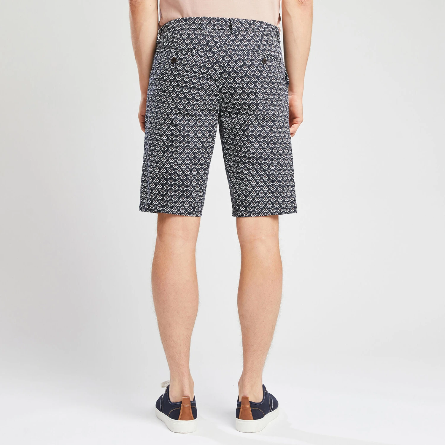 Ce bermuda chino imprimé ethnique possède 2 poches italiennes avant, 2 poches passepoilées boutonnées arrière, une fermeture zippée et un bouton de fermeture avant.