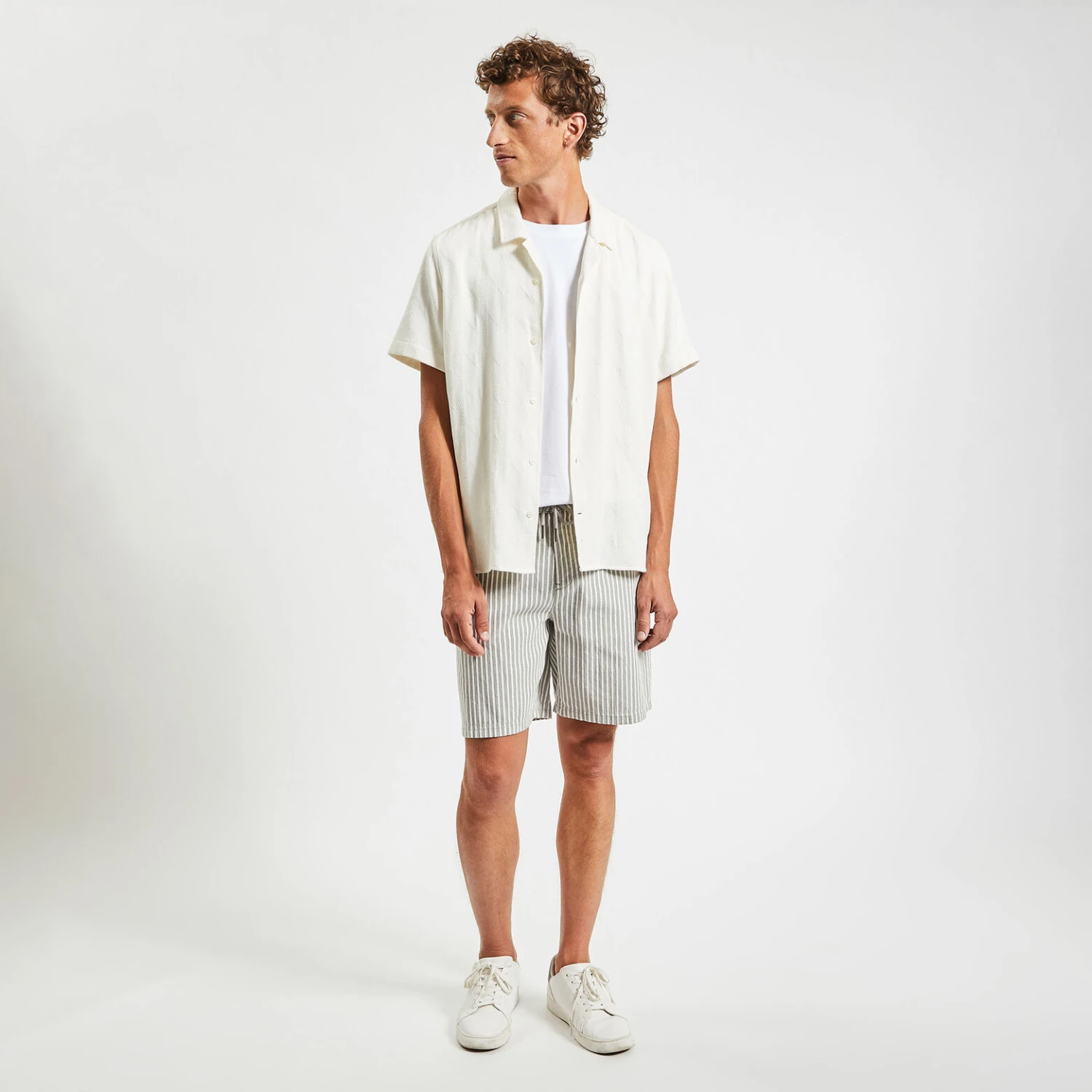 Ce bermuda rayé à taille élastiquée allie confort et légèreté, parfait pour cet été. Il peut se porter facilement avec un tee-shirt ou une chemise.