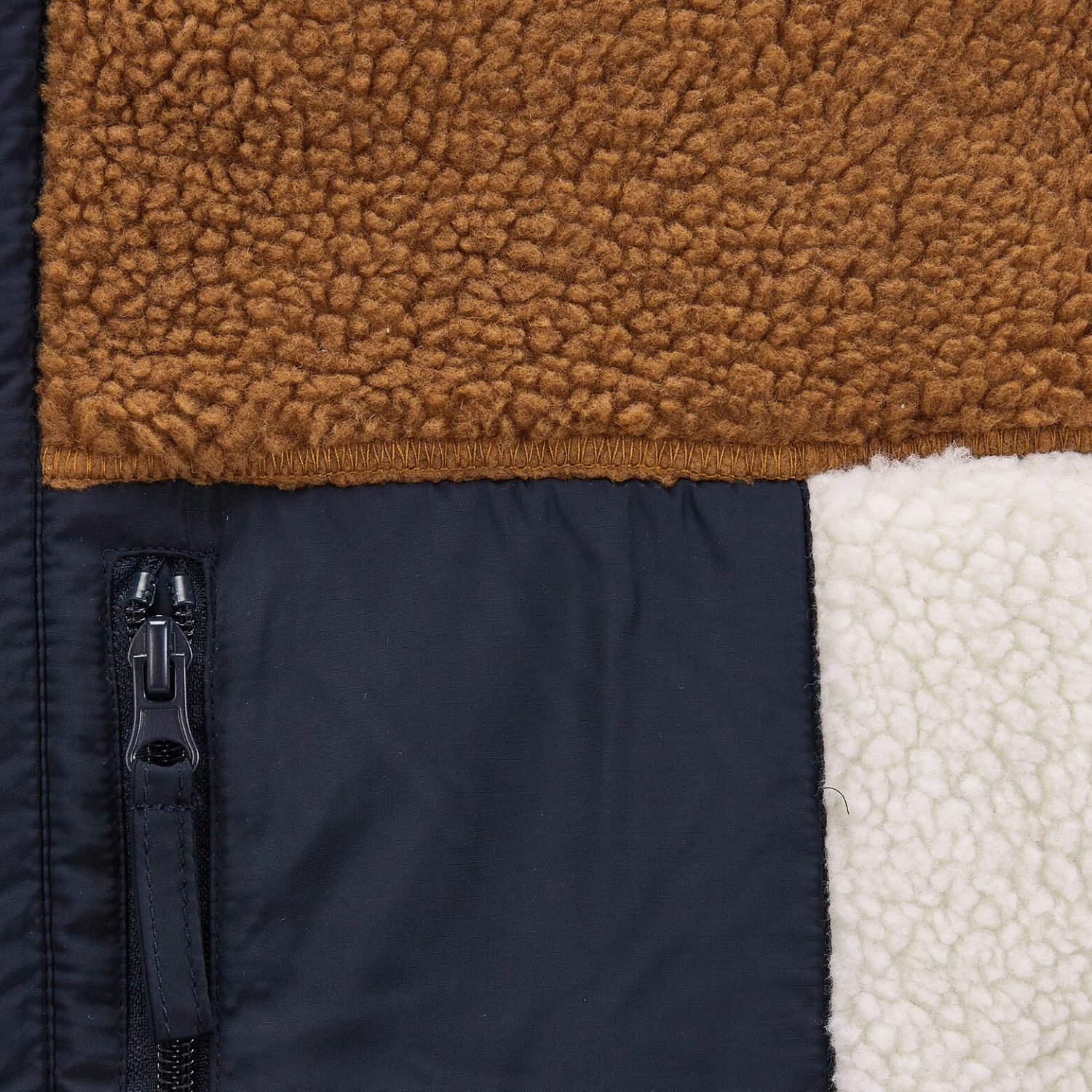 Ce blouson en mouton synthétique à col montant possède une fermeture zippée, 2 poches zippées sur le devant et une poche zippée poitrine. Dispose également d’une poche intérieure zippée. Existe en version unie ou colorblock.