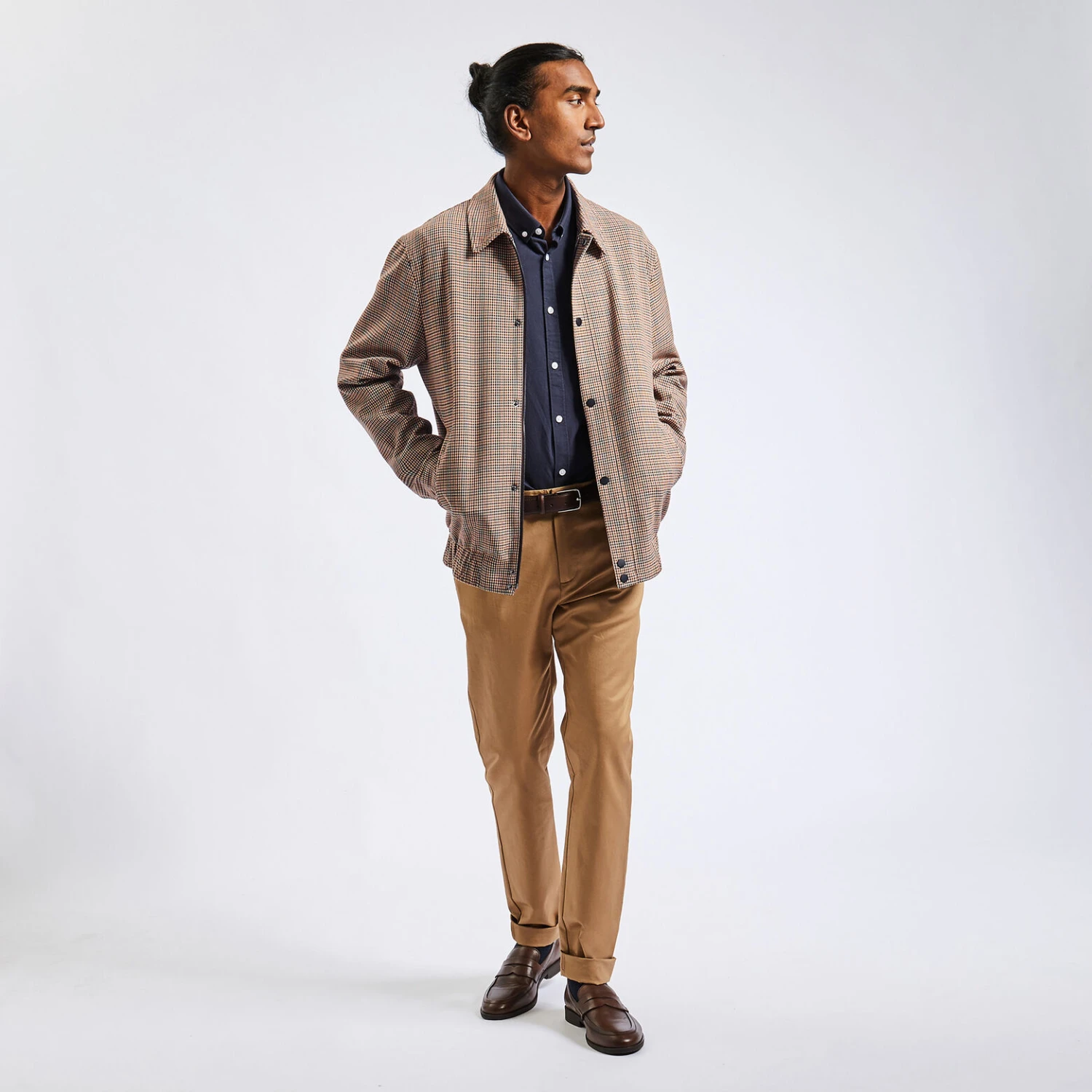 Confectionné dans un très beau tissu pied-de-puce, ce blouson se porte avec un pantalon chino ou un jean, pour une touche chic quelque soit votre look.