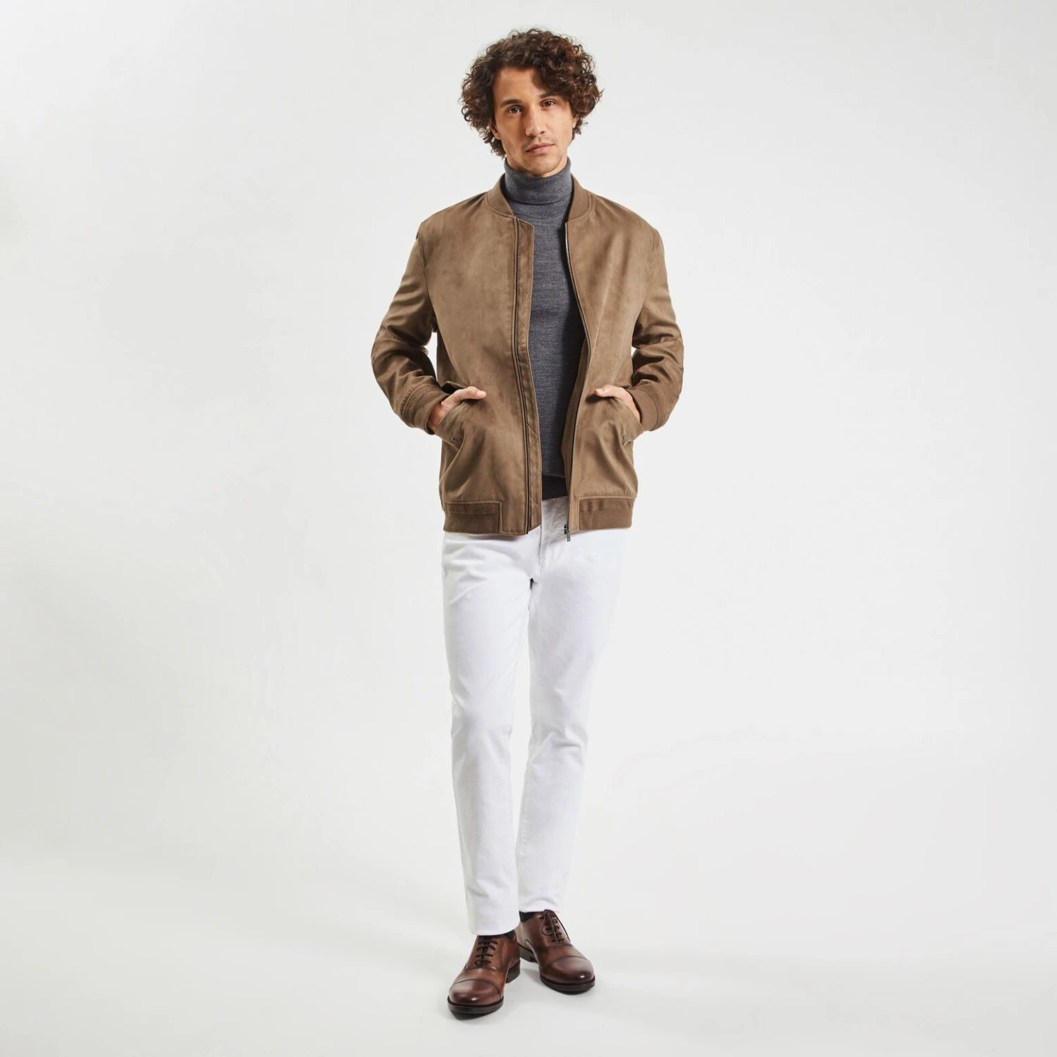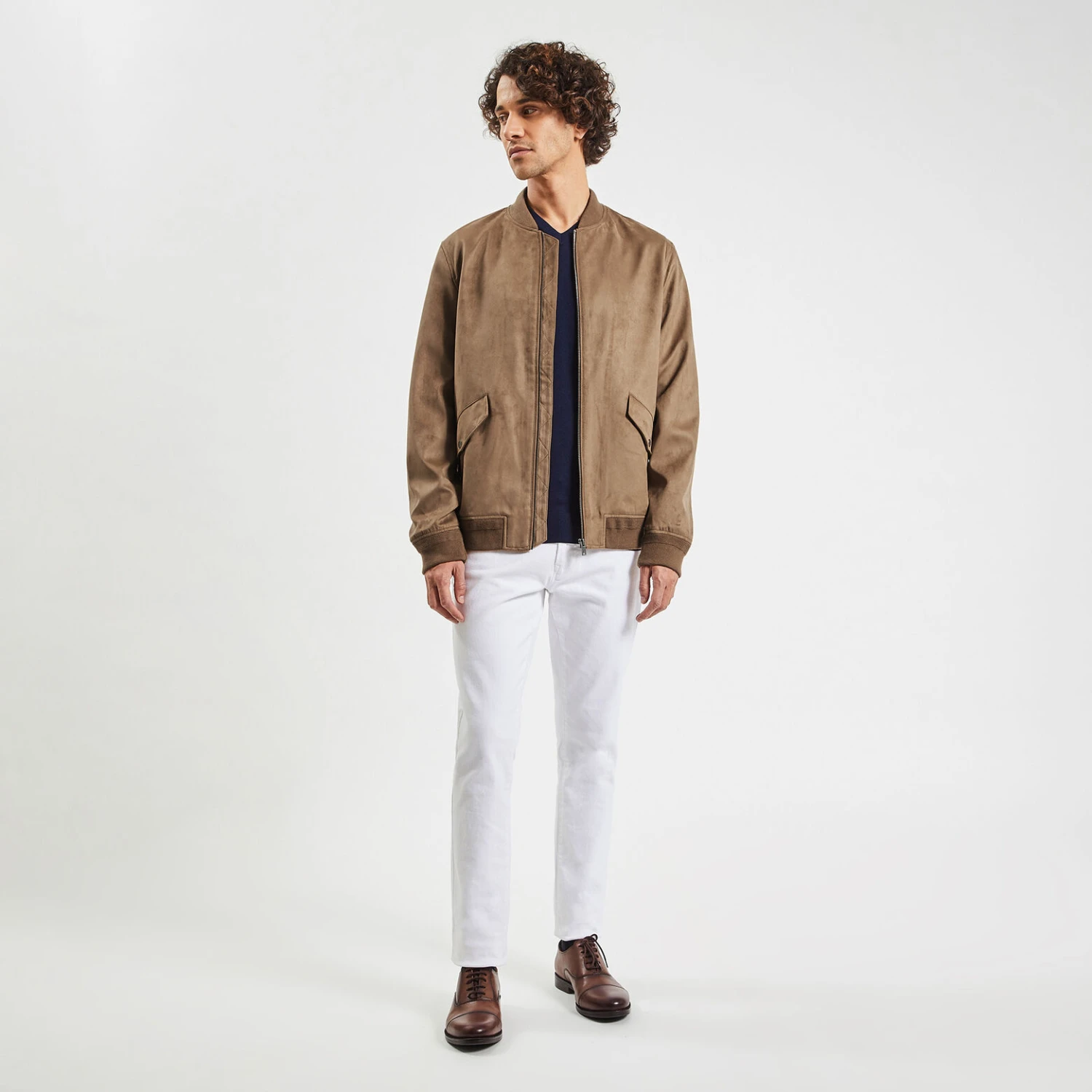 Ce blouson uni en matière suédé convient à tous les styles. Avec un jean ou un pantalon chino, il vous donnera un look résolument moderne. Sa matière est chaude, épaisse et confortable; l’accessoire idéal pour l’hiver.