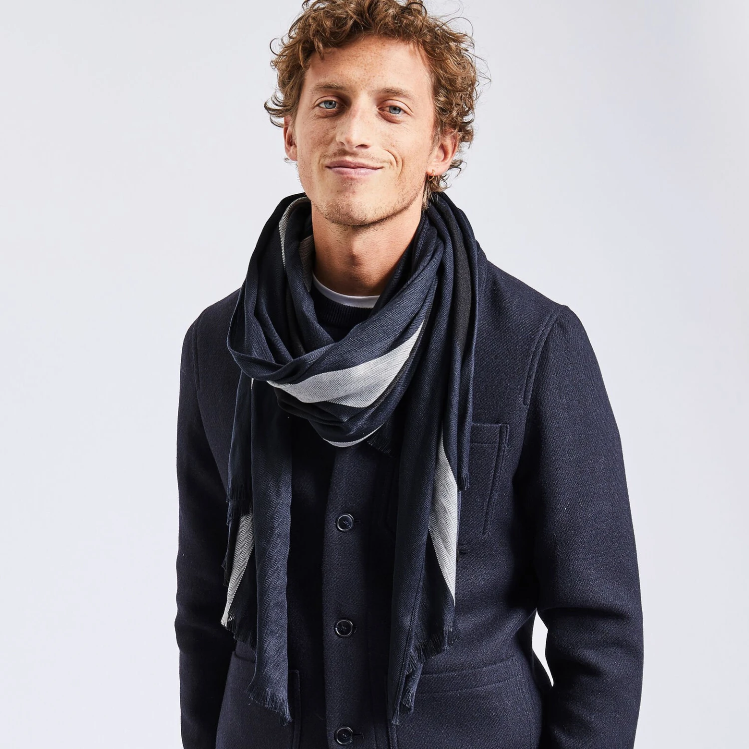 Protégez vous du froid avec élégance grâce à ce chèche à rayures.