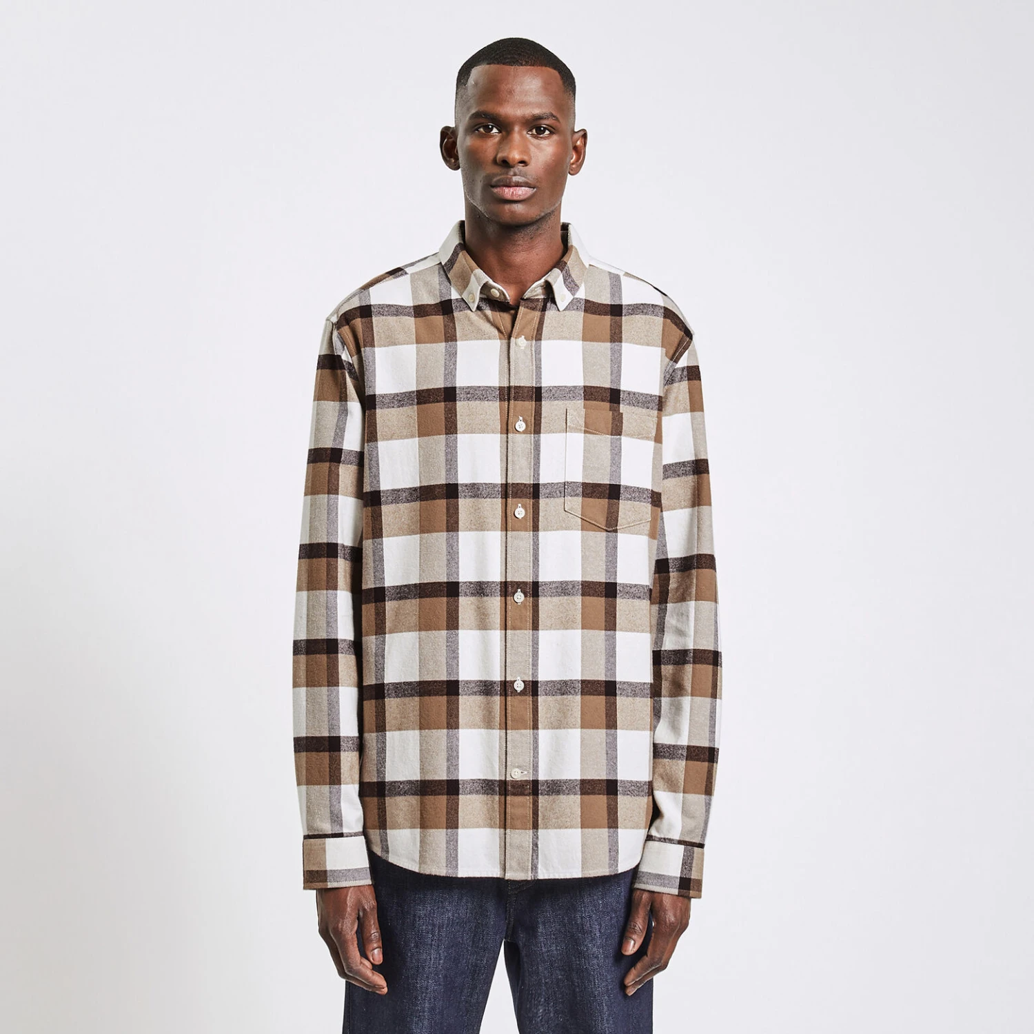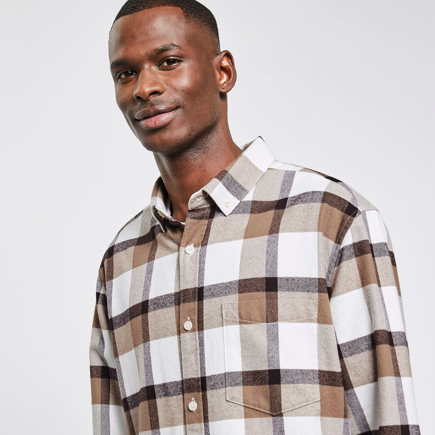 Cette chemise à carreaux à manches longues se porte seule ou au dessus d’un tee-shirt, pour un style décontracté.