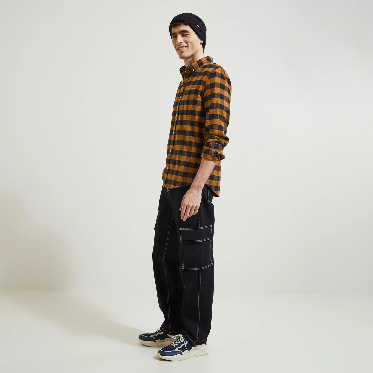 - Coupe regular, ni trop ajustée ni trop large avec un tombé droit