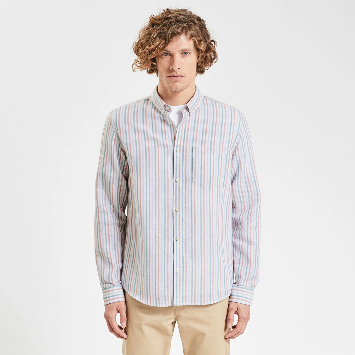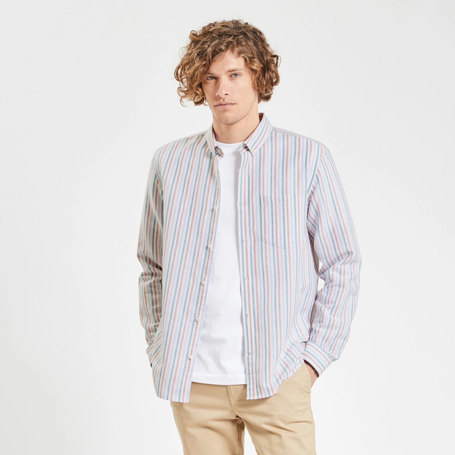 Cette chemise à rayures en coton lin, thermorégulant, associe légèreté et douceur au quotidien.