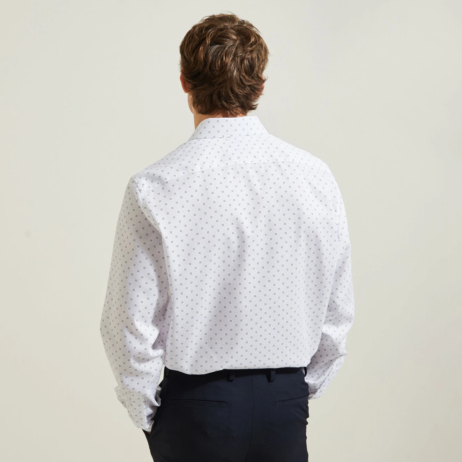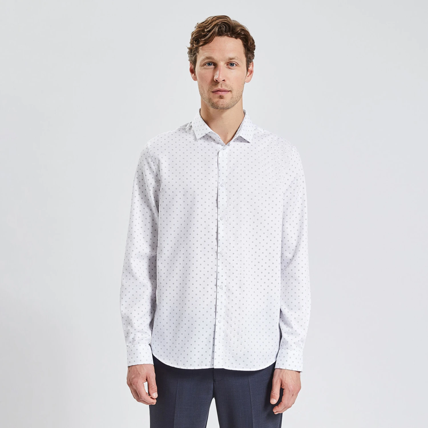 Cette chemise à manches longues en coton, avec motifs en jacquard, s’adapte à toute morphologie et à toutes les situations : Look sportswear décontracté ou urbain plus habillé.