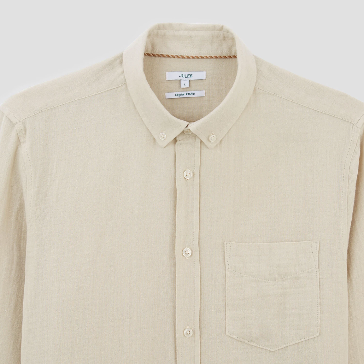 Cette chemise en gaze de coton est éco-conçue. La démarche d’éco-conception a pour but de réduire l’impact environnemental d’un produit sur tout son cycle de vie, de sa conception en passant par la sélection des matières premières jusqu’à la fin de vie. Chez Jules, c’est l’assurance de porter au cœur de nos process de création et de fabrication la question de la durabilité et de la circularité de vos vêtements. Reliefée, douce, légère et confortable, elle est un intemporel du dressing masculin.