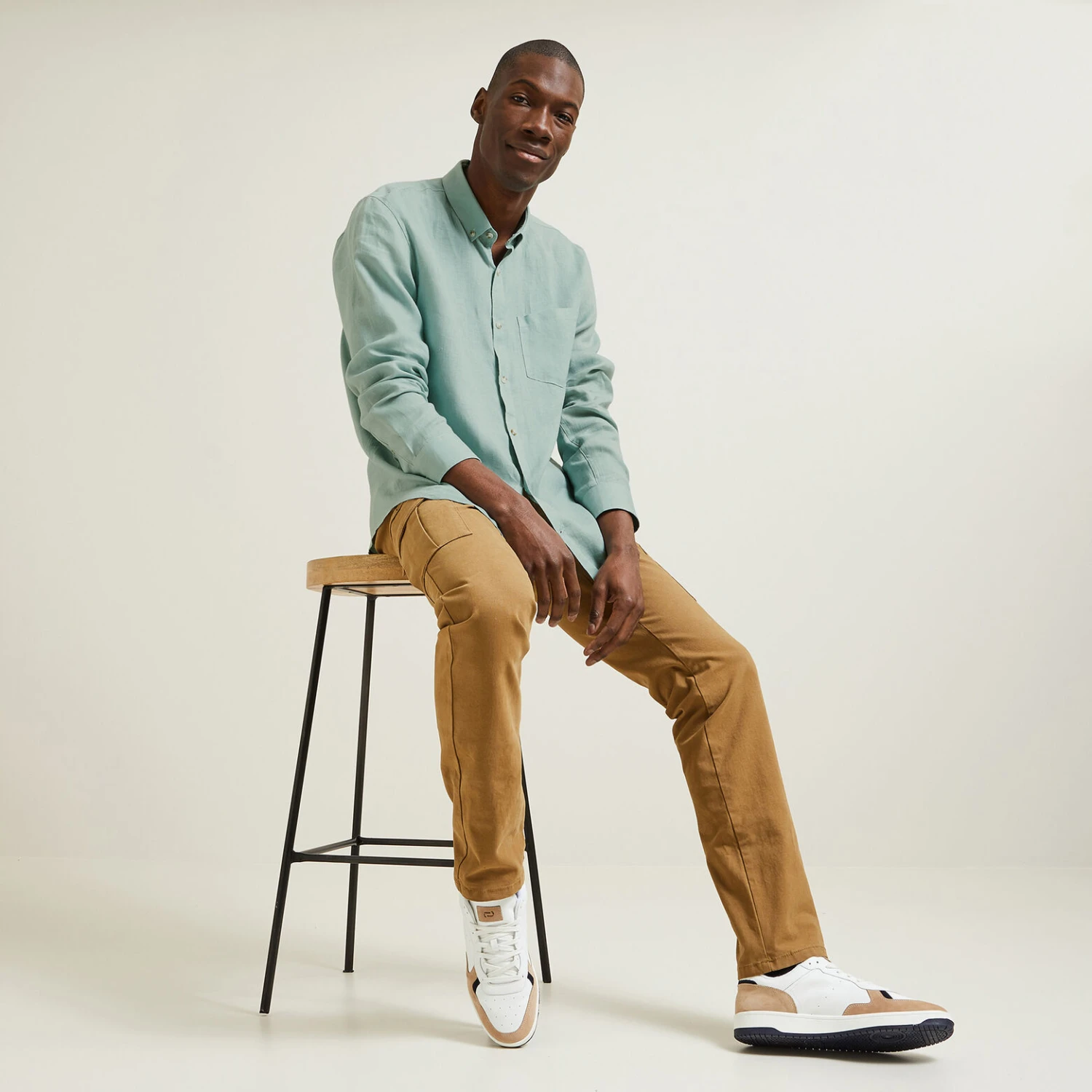 Cette chemise en lin est éco-conçue. La démarche d’éco-conception a pour but de réduire l’impact environnemental d’un produit sur tout son cycle de vie, de sa conception en passant par la sélection des matières premières jusqu’à la fin de vie. Chez Jules, c’est l’assurance de porter au cœur de nos process de création et de fabrication la question de la durabilité et de la circularité de vos vêtements. Légère, robuste et à la propriété thermorégulatrice, elle est idéale pour cet été ! Elle se décline en plusieurs coloris tendances.