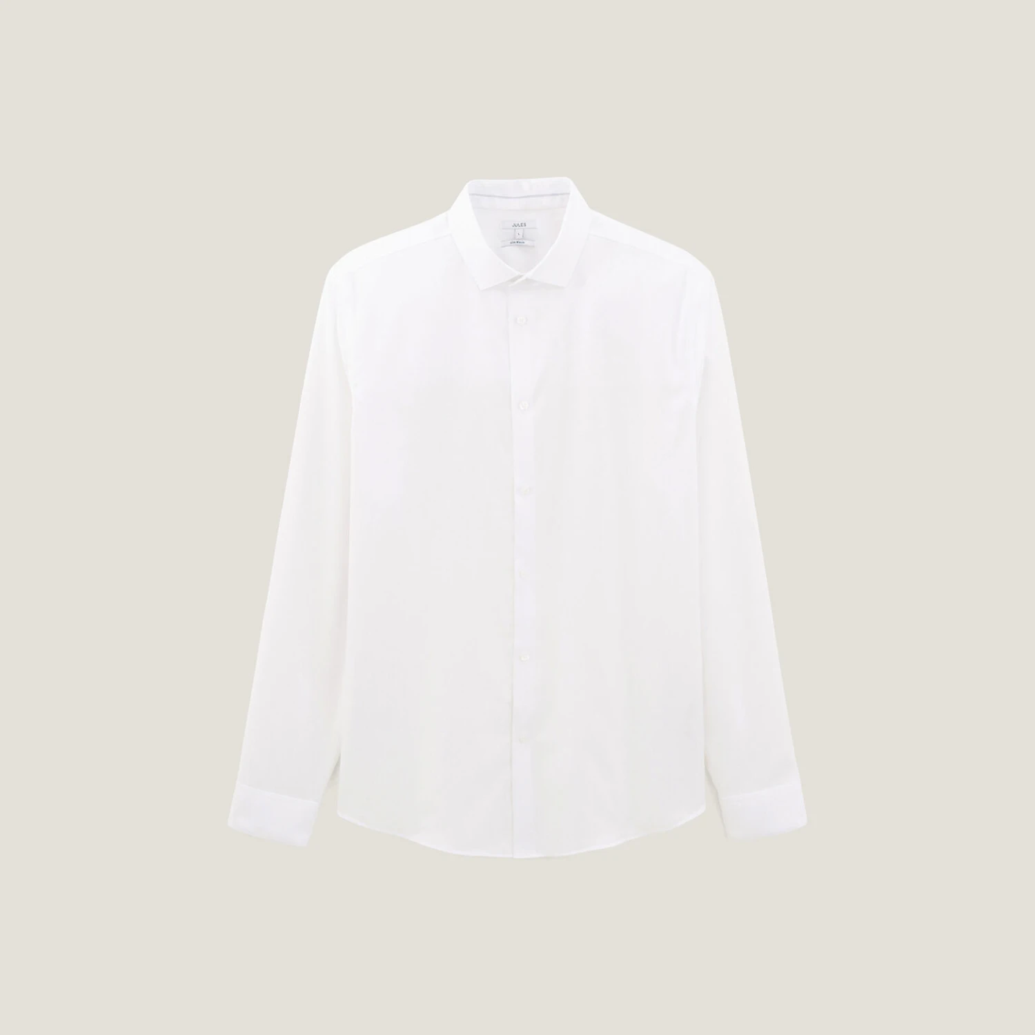 Cette chemise slim sans repassage, en coton, est un bon basique à avoir dans son dressing. Avec un jean, avec un chino, avec un pantalon de costume et même avec un bermuda, elle s’associe avec tout. Pour ajouter une touche plus personnelle, vous pouvez ajouter des boutons de manchette.