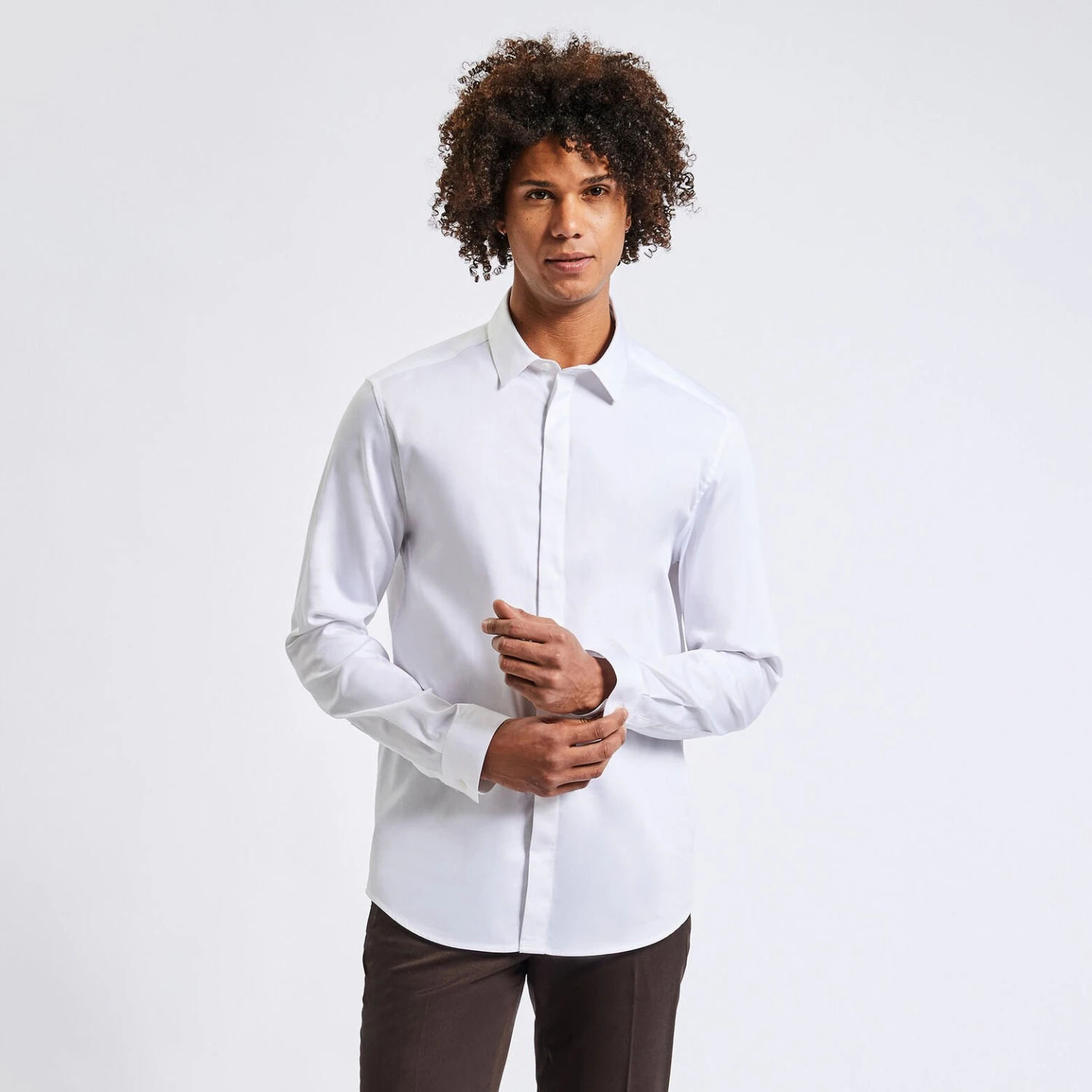 Cette chemise unie est confectionnée en satin de coton qui allie la douceur du coton à l¿aspect uni, lisse et brillant de son tissage. Fibre naturelle, le coton est léger et respirant. Elle possède une fermeture boutonnée sous patte, idéale pour les occasions élégantes.
