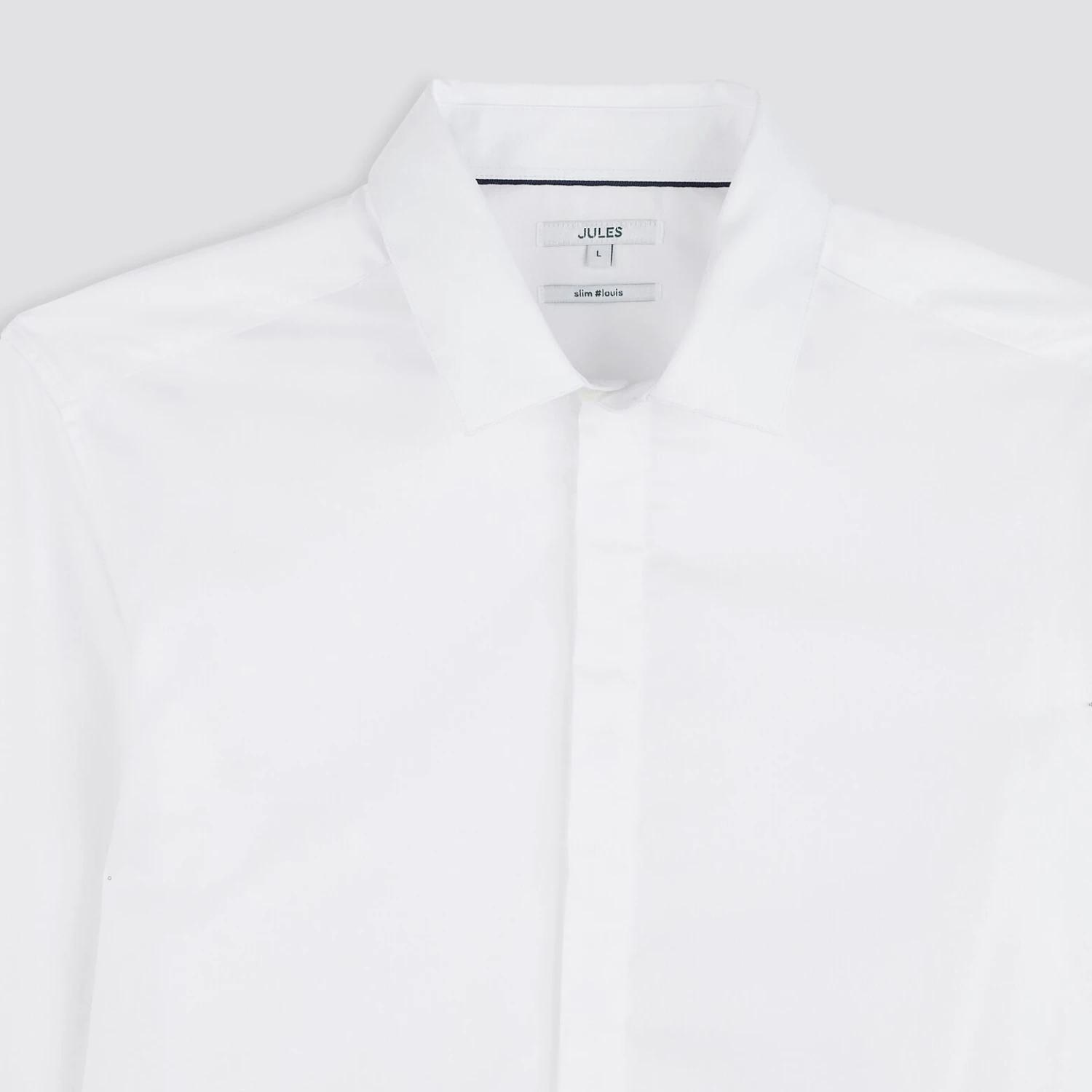 - Col classique thermocollant, renforcé par une bande thermocollante permettant de garantir un maintien optimal de celui-ci. Joli détail contrasté à l’intérieur du col.