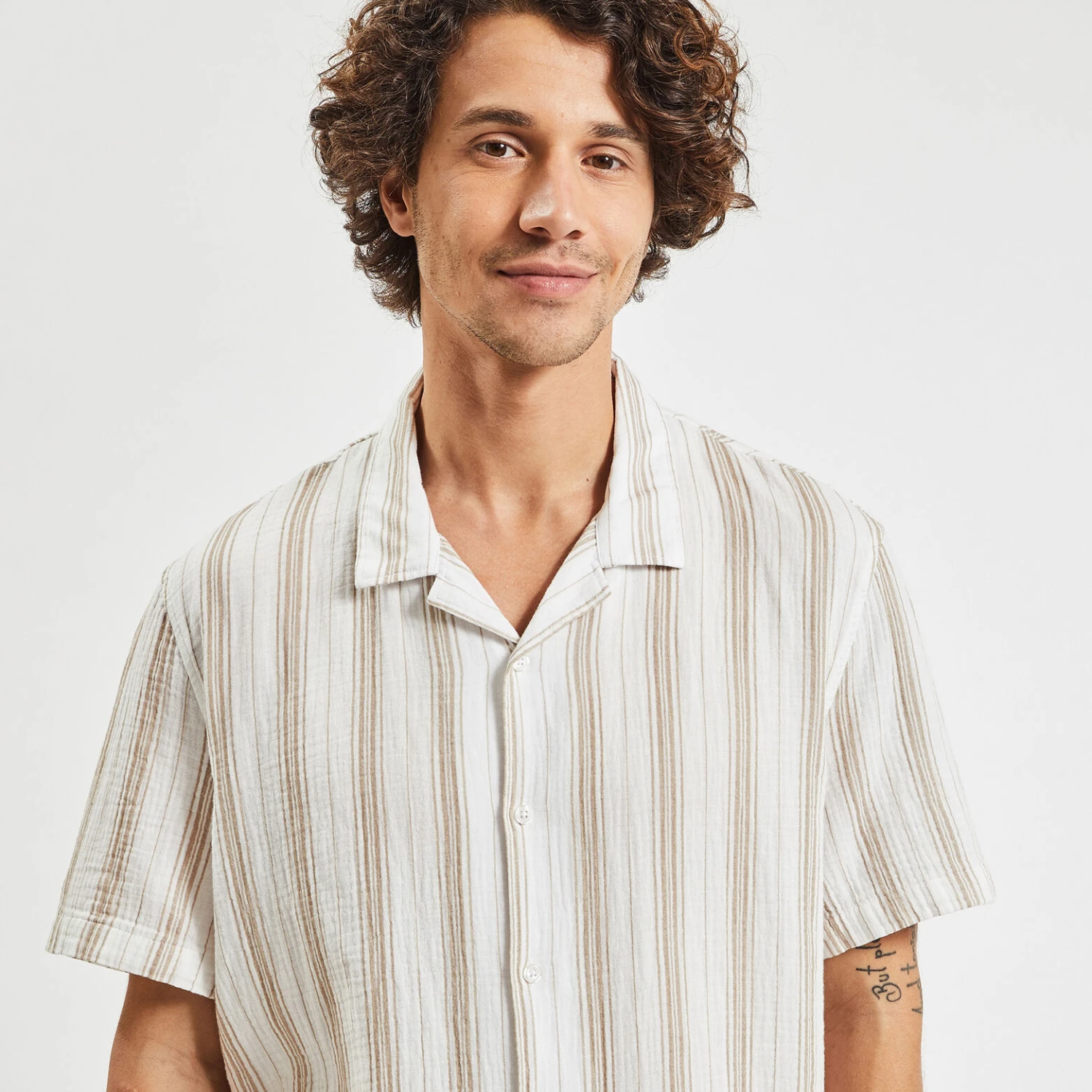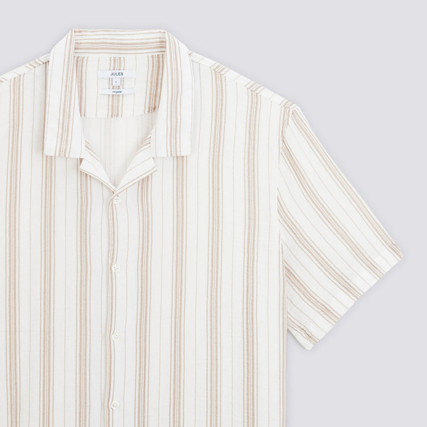 Cette chemisette à rayures en gaze de coton est douce et confortable à porter. Idéale pour un style estival décontracté, elle peut s’associer avec un bermuda, un chino ou un short.
