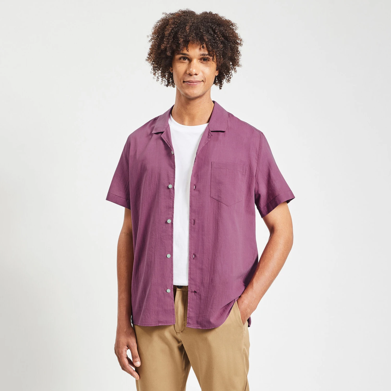 En coton plissé et doux, cette chemise à manches courtes unie est idéale pour un style chic et léger en saison estivale !