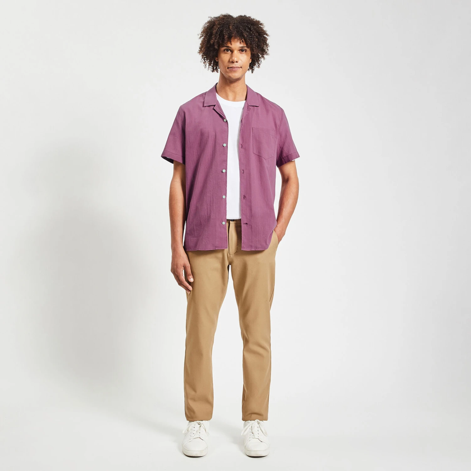- Coupe regular, ni trop ajustée ni trop large avec un tombé droit