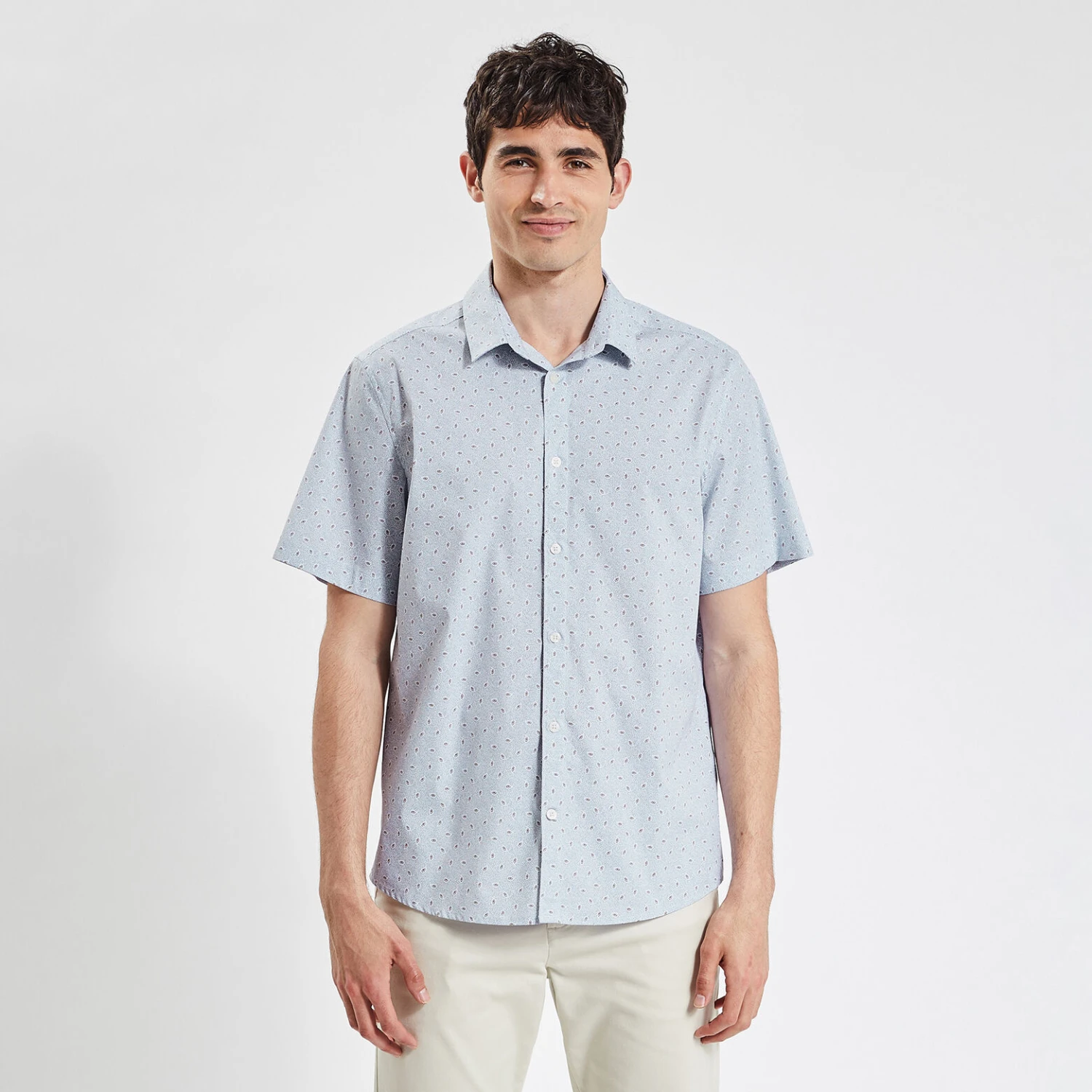 Tout en s’ajustant à votre silhouette et en garantissant de l’aisance, cette chemisette imprimé micro fleurs en coton stretch offre un look décontracté mais chic.