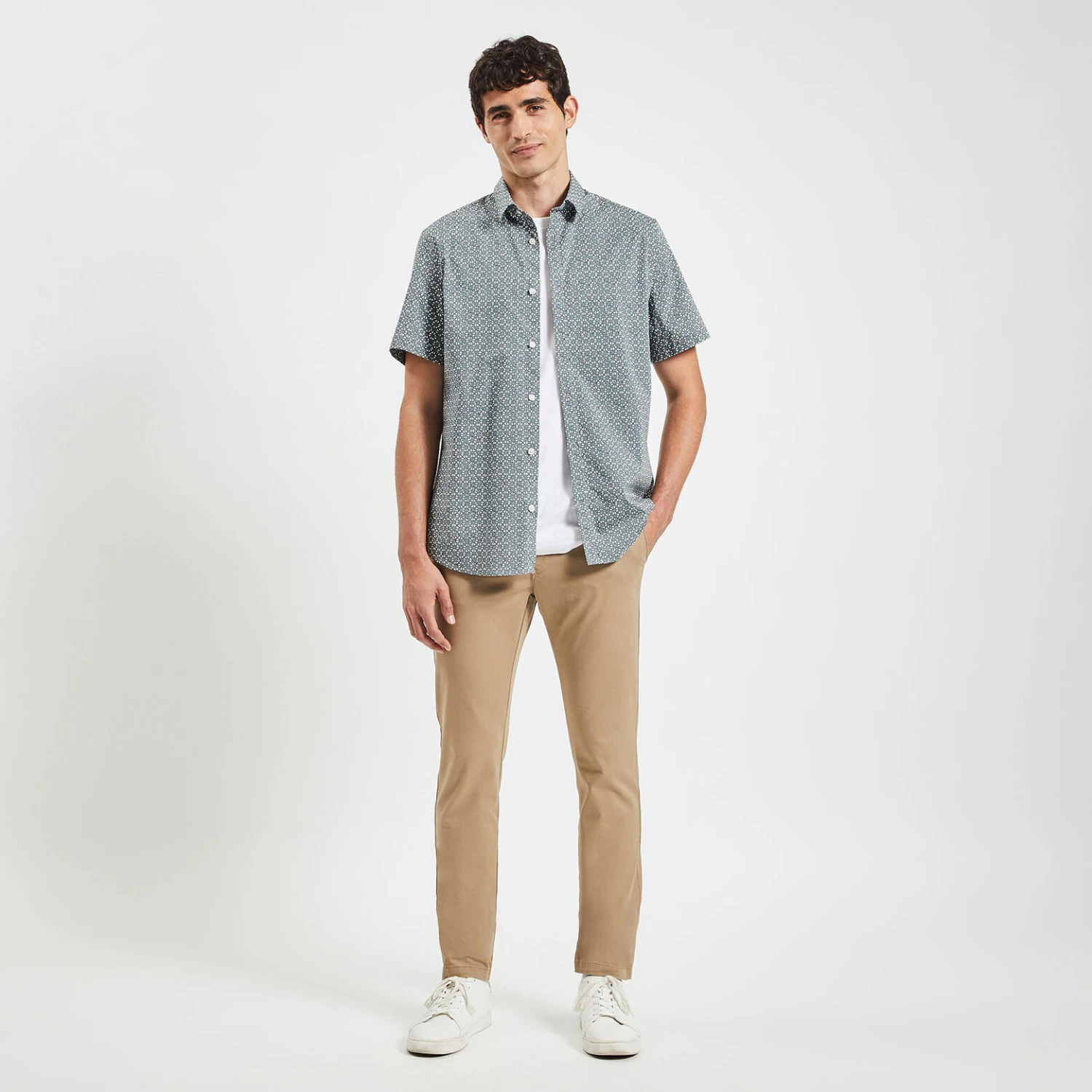 Cette chemise en coton stretch est un bon basique à avoir dans son dressing pour l’été. Avec un short ou un bermuda, passez en mode été.