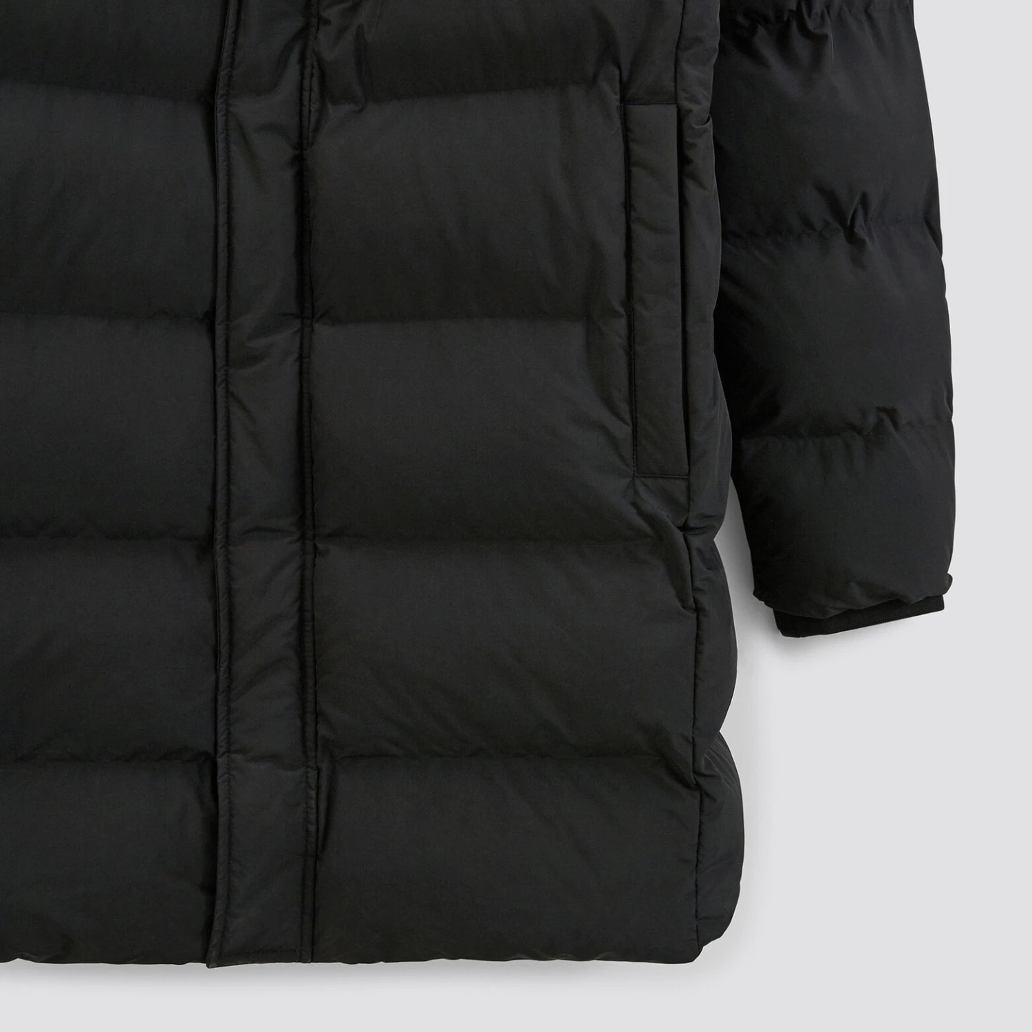 Cette doudoune longue, avec son col montant bien couvrant et sa capuche resserrable, est un atout à avoir absolument dans son dressing !