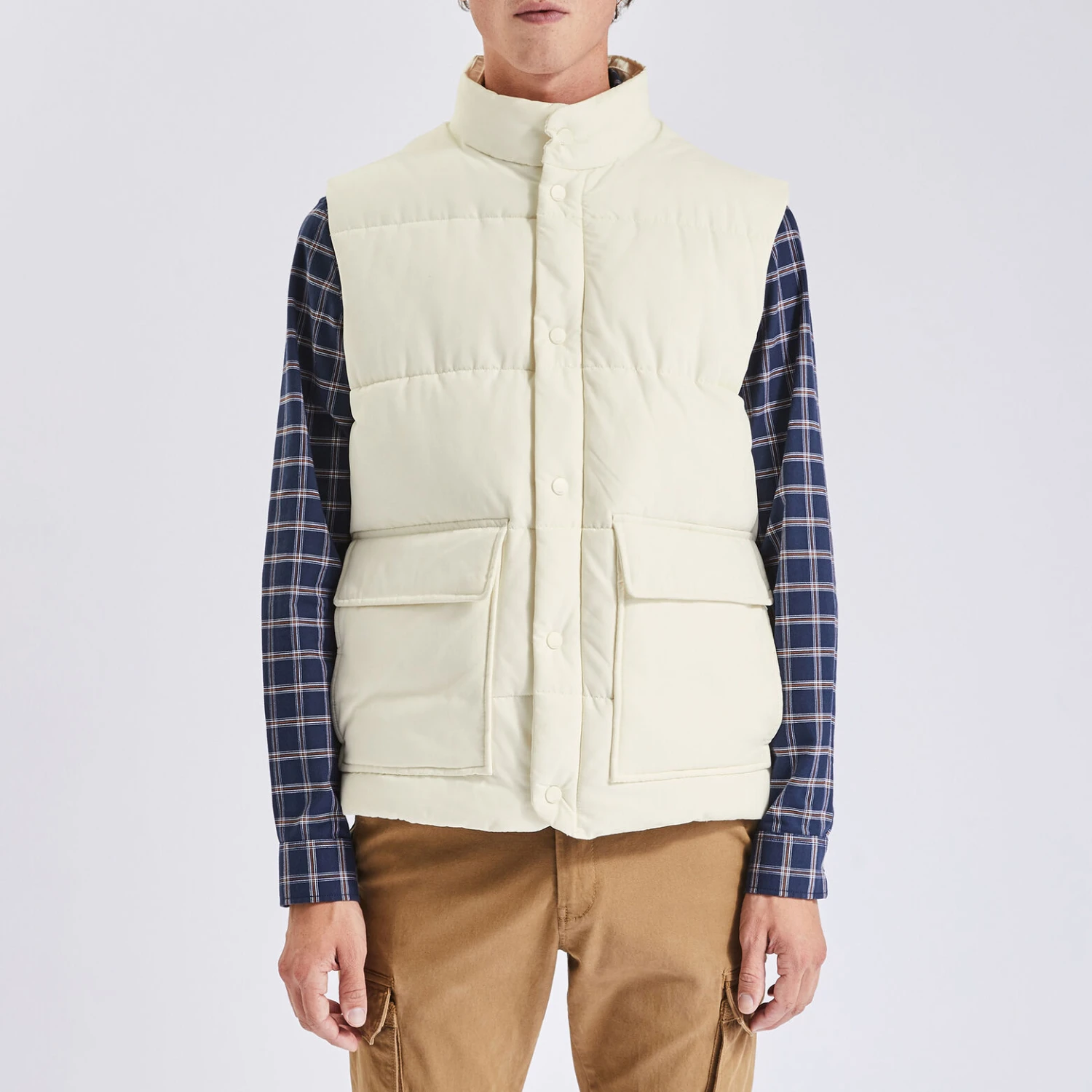 Cette grosse doudoune chaude sans manche, avec double fermeture zippée et pressionnée possède un col montant bien couvrant, deux poches pressionnées sur le devant et une poche intérieure.