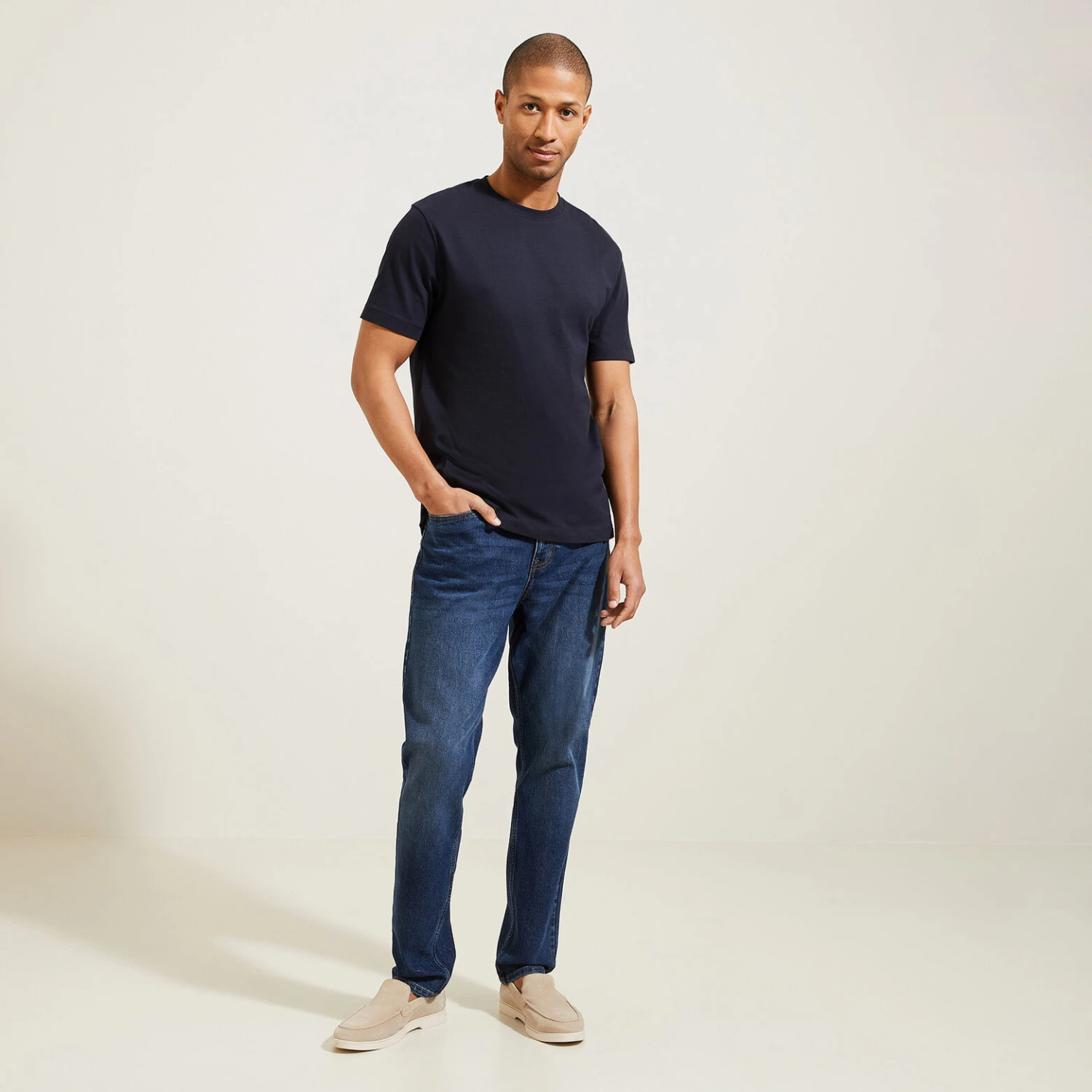 Ce jean en denim, épais et épuré, assure style et confort en toutes circonstances.