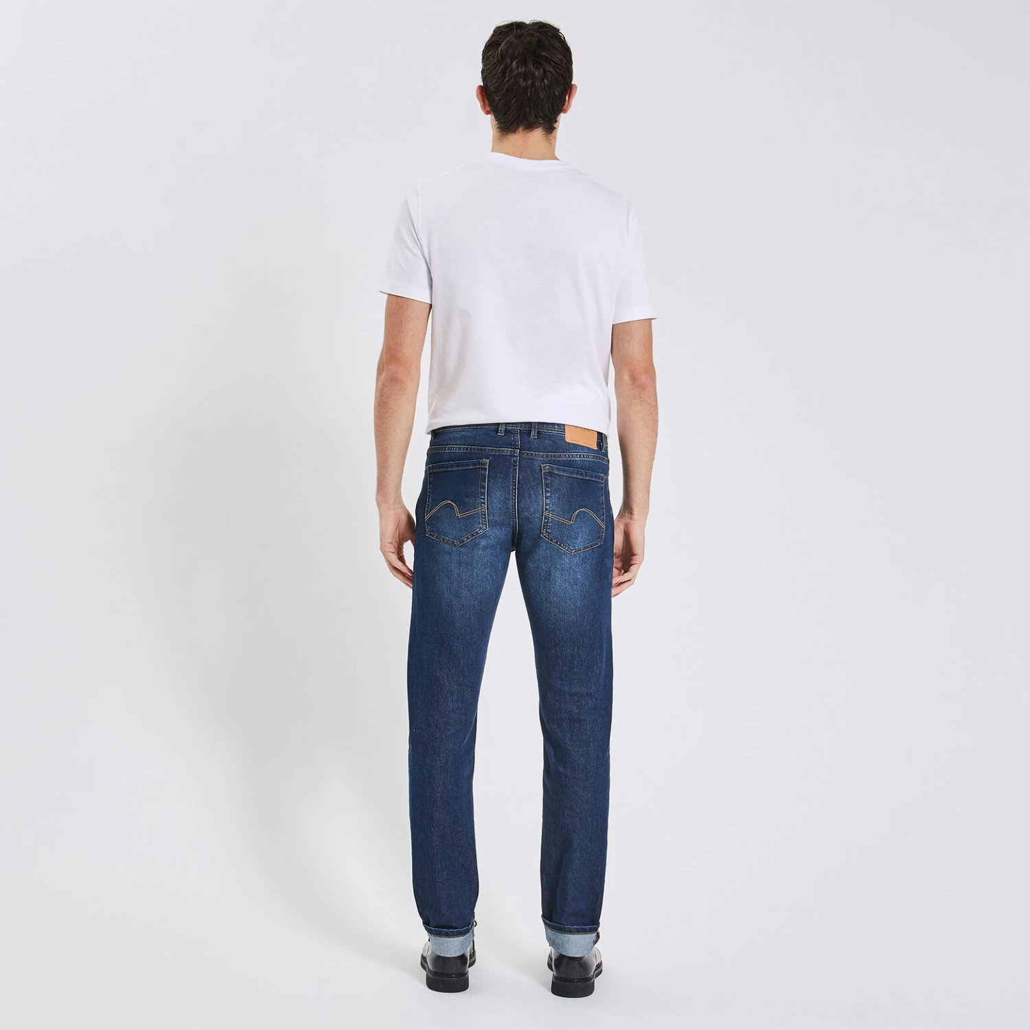 Ce jean en denim, épais et épuré, assure style et confort en toutes circonstances.