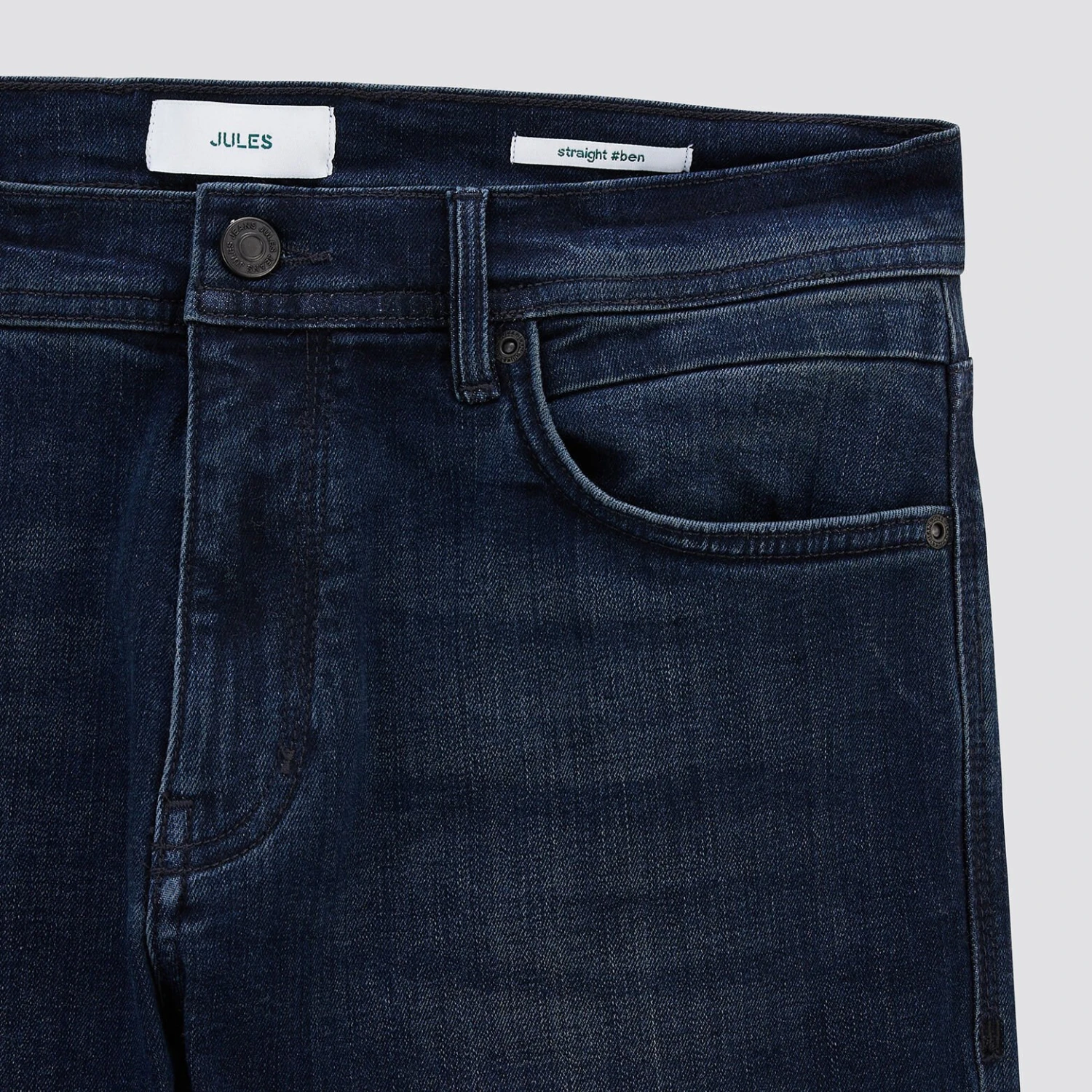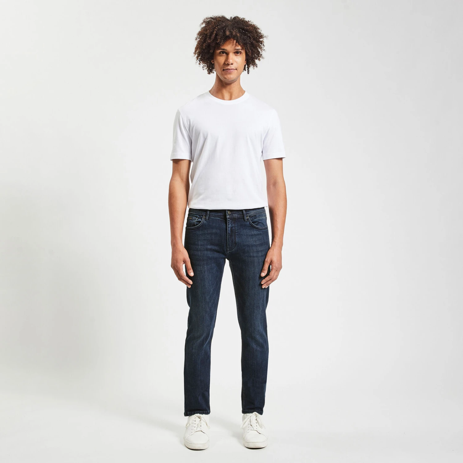 - Coupe straight, relâché sur la cuisse et droit sur la jambe