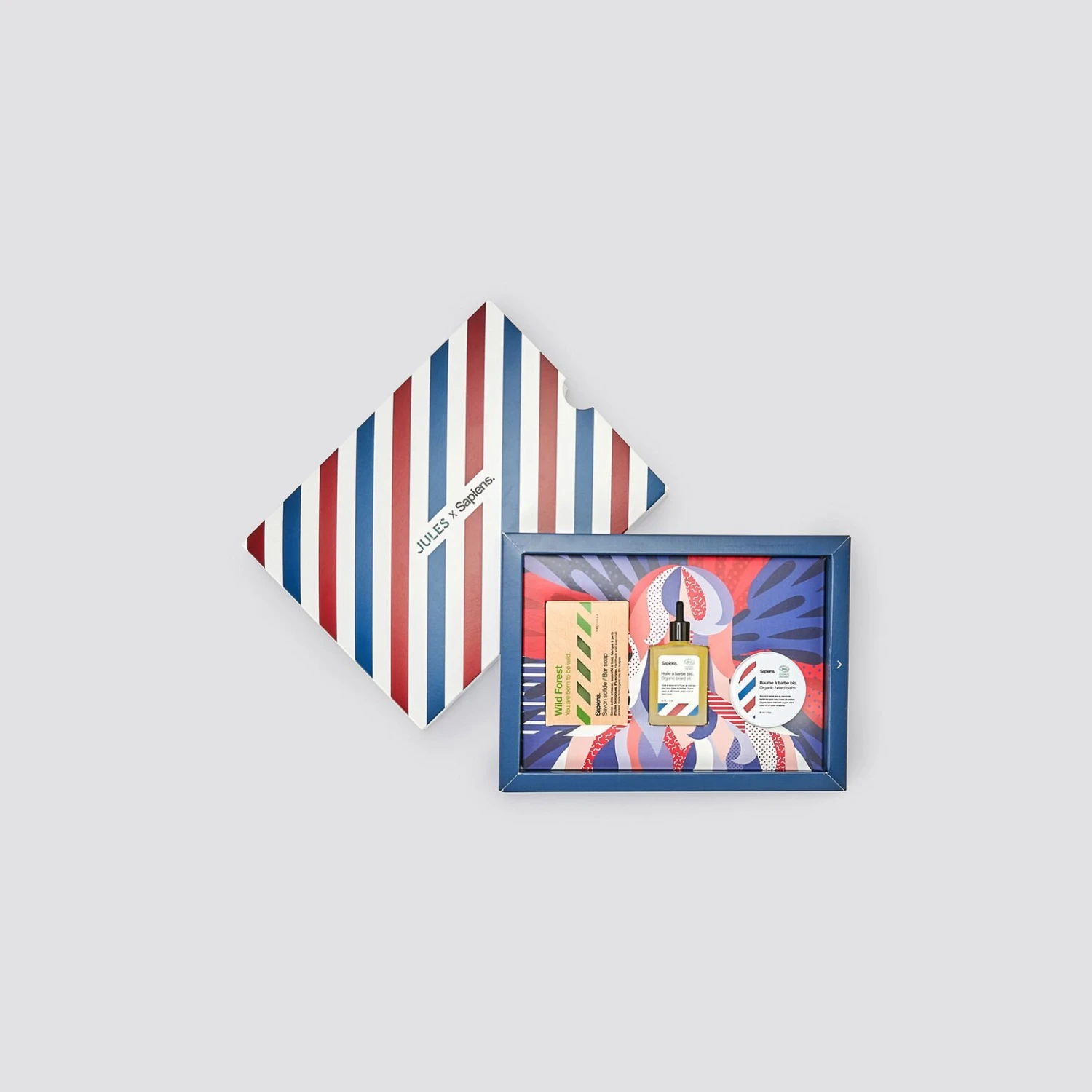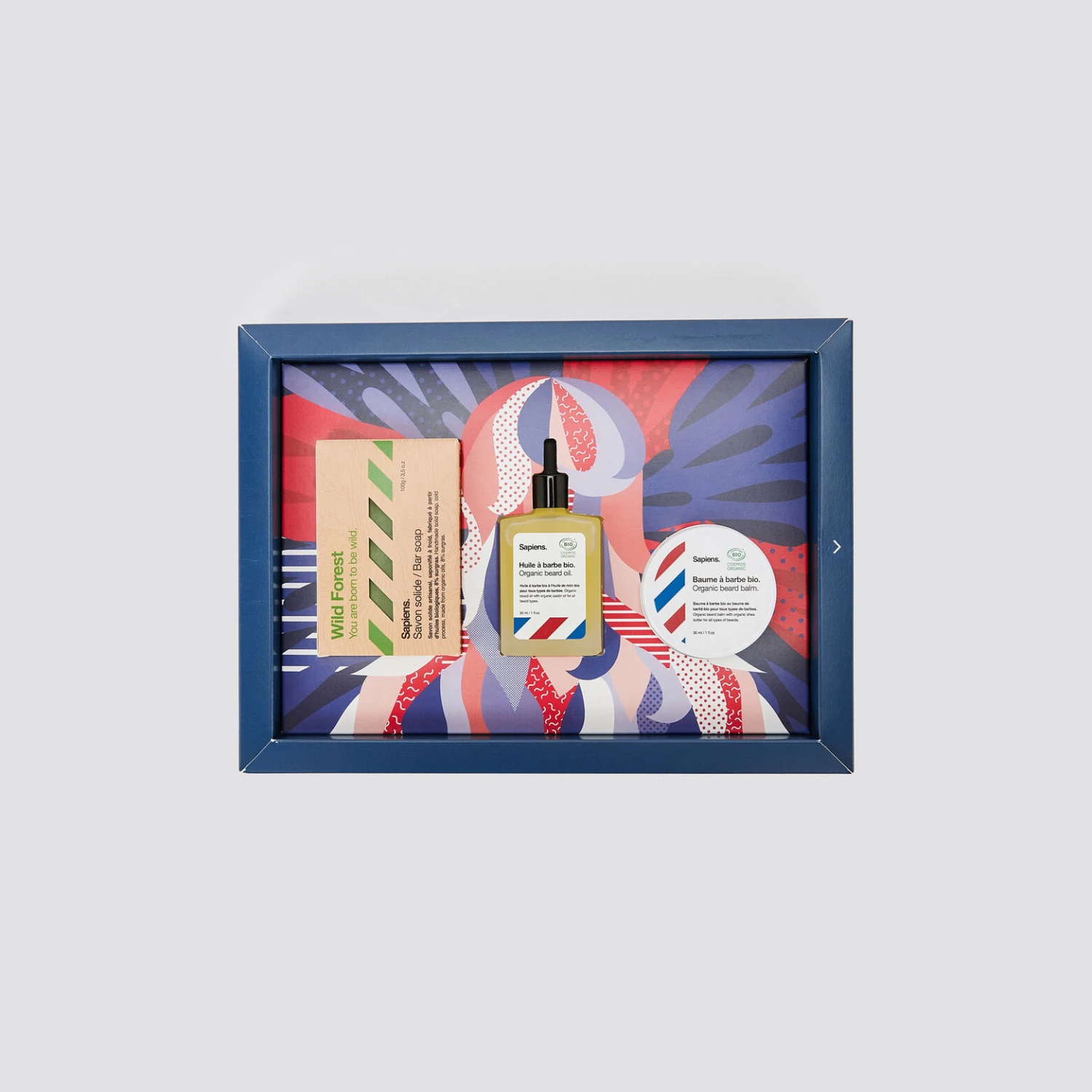 Ce kit cosmétique pour barbe et corps est fabriqué en France. Il comporte un savon solide 100g, une huile à barbe de 30 ml et un baume à barbe de 30 ml.