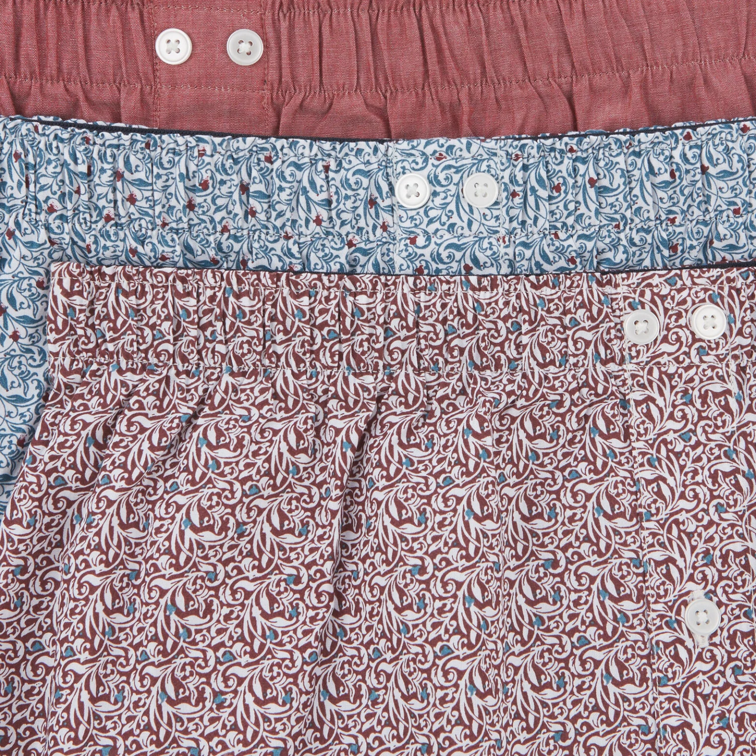 Ce lot de 3 caleçons fantaisies est composé de deux caleçons à fleurs et d’un caleçon uni.