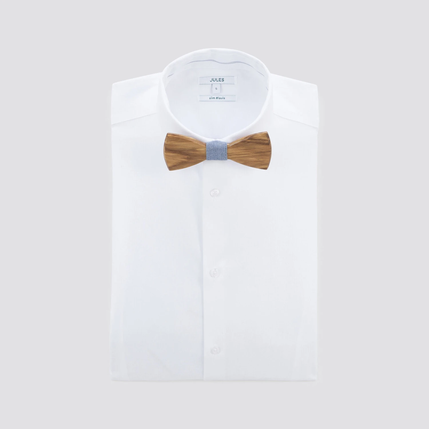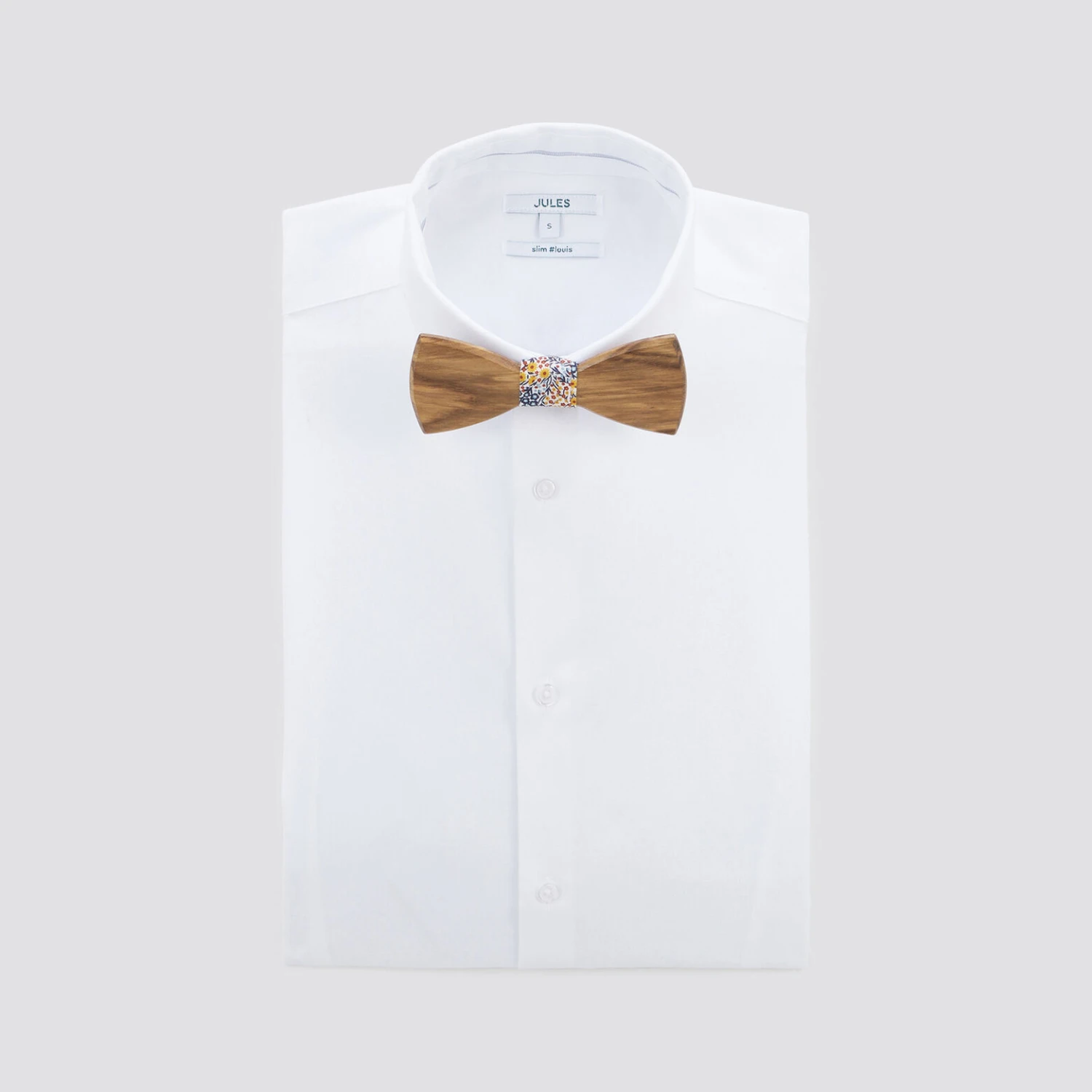Ce nœud-papillon en bois dispose de deux bagues interchangeables, ce qui permet d’offrir deux styles différents. L’une est de couleur unie, la seconde possède un imprimé fantaisie. Ce modèle s’adapte à tous les looks : classique sur une chemise blanche ou plus décontracté sur une chemise imprimée.