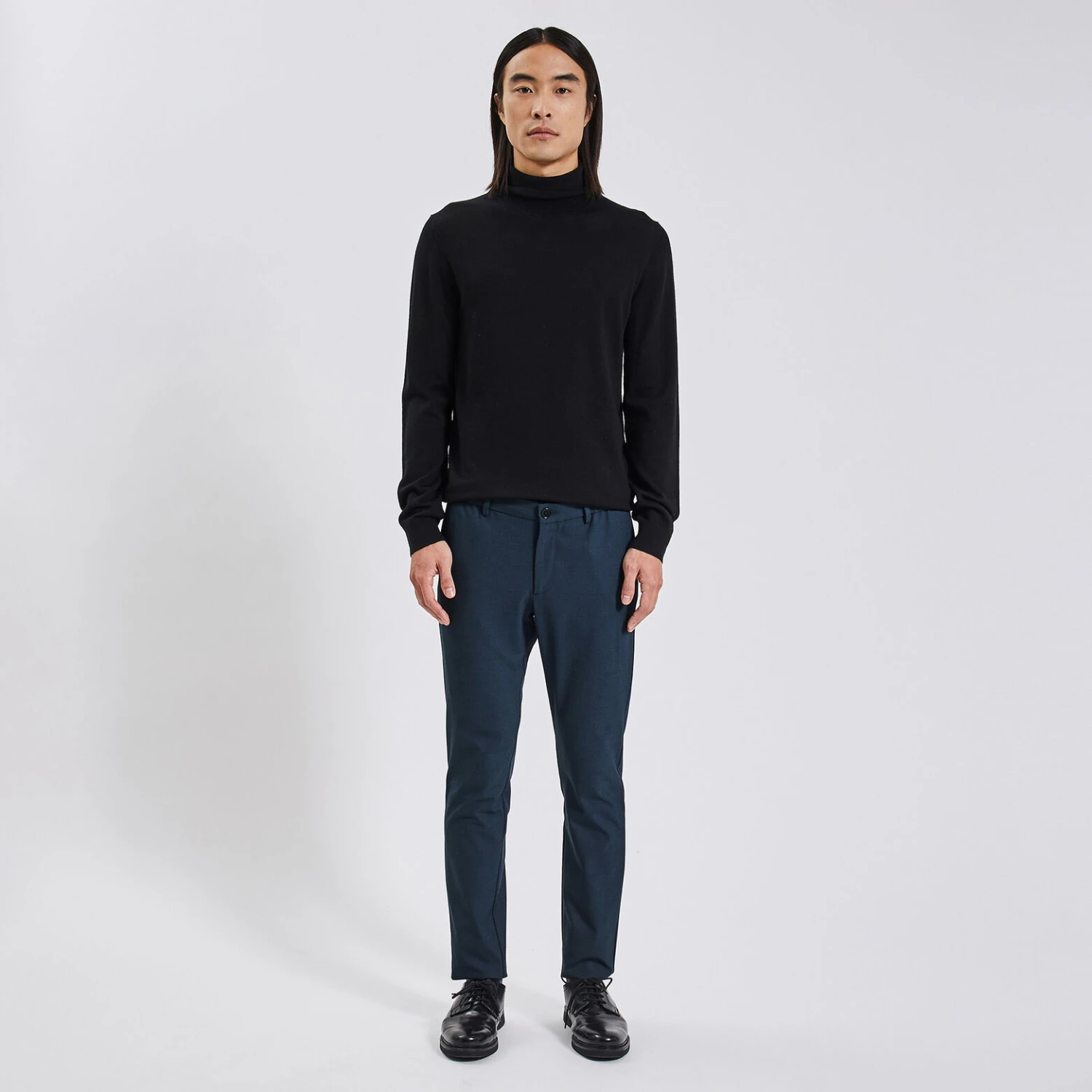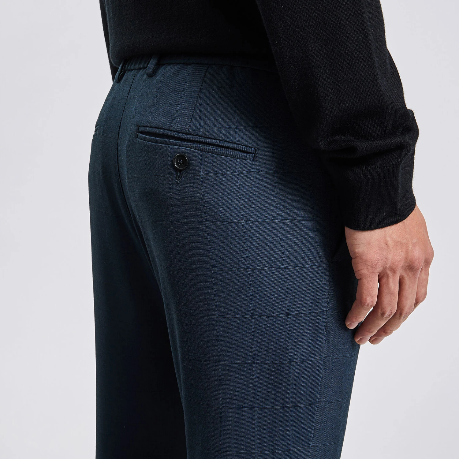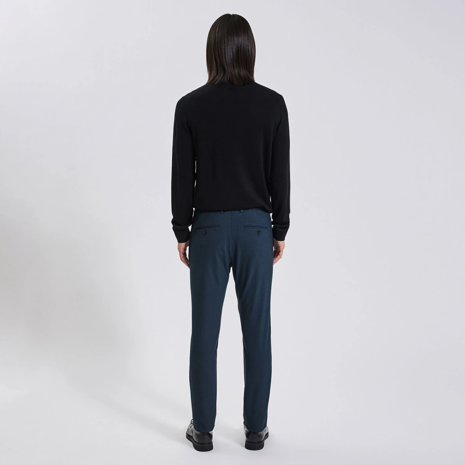 - 2 poches italiennes avant + 2 poches passepoilées boutonnées arrière