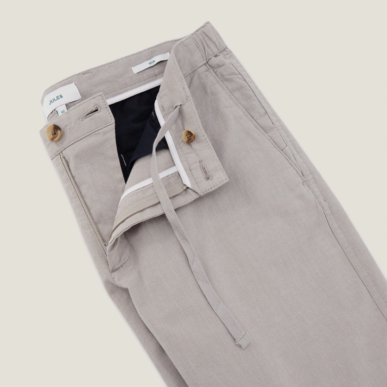 Ce pantalon chino contient 3% d’élasthanne, pour un confort maximal.