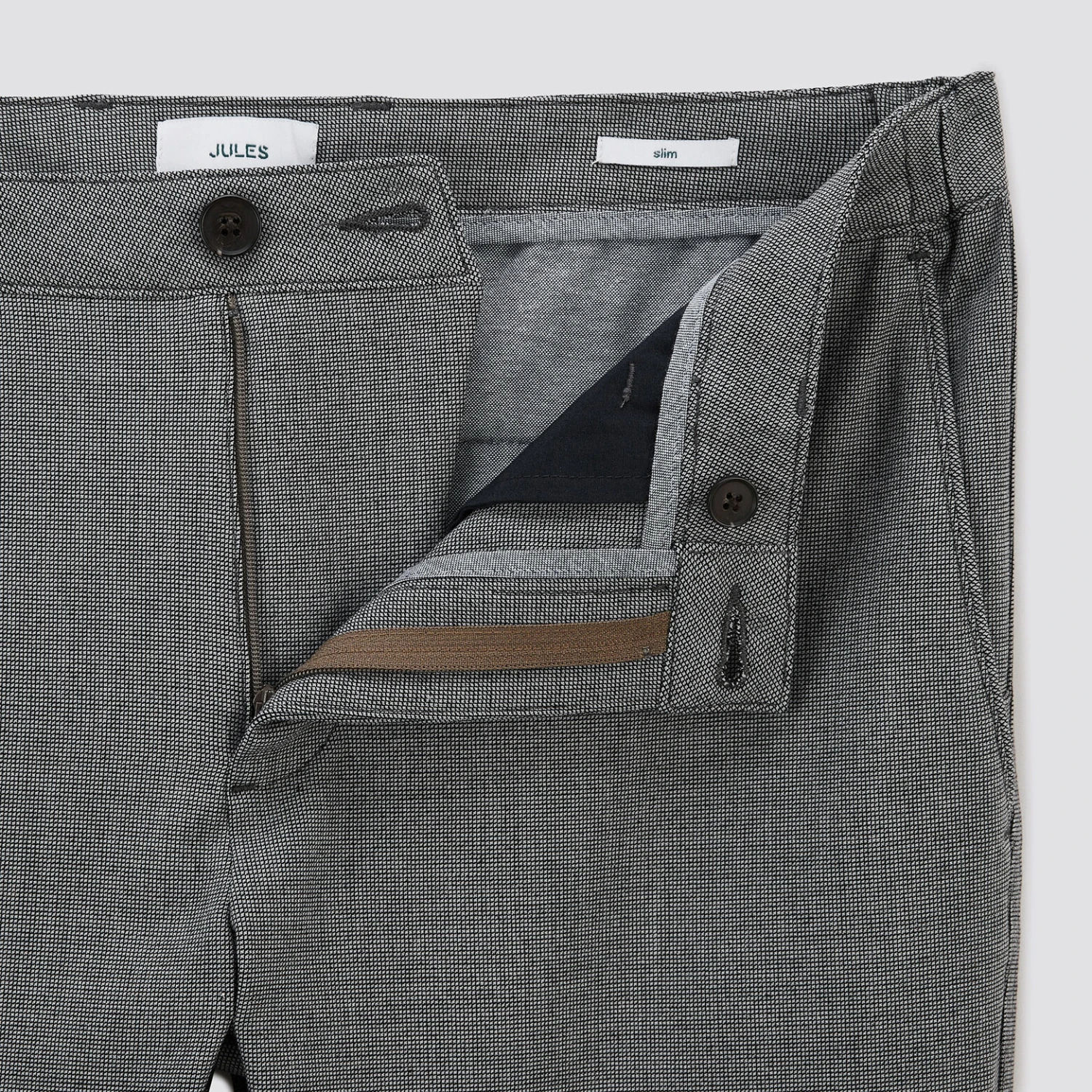- Coupe slim dobby, étroit sur la cuisse et sur toute la jambe