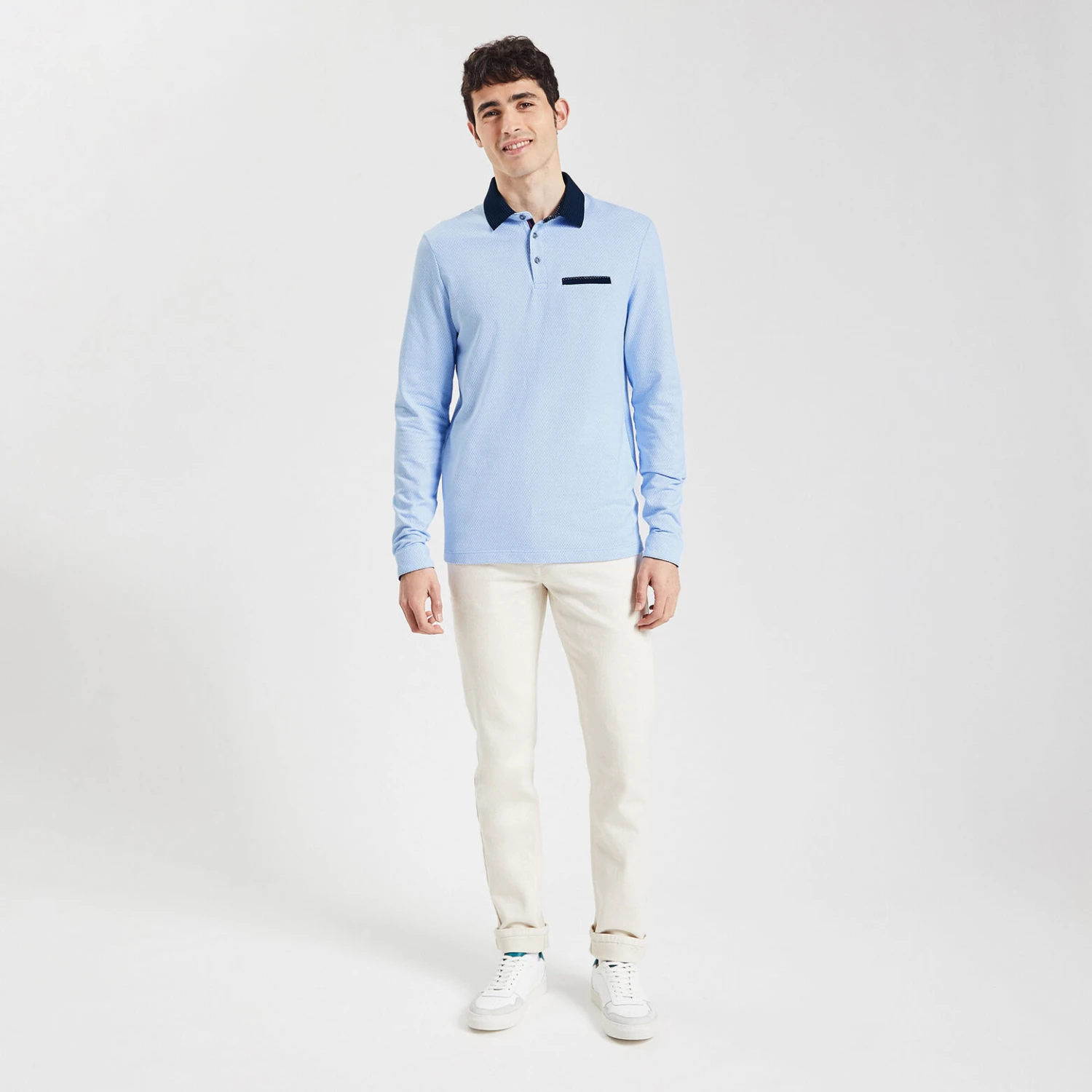Véritable basique du vestiaire masculin, ce polo jacquard à manches longues apporte une touche élégante en toutes circonstances !