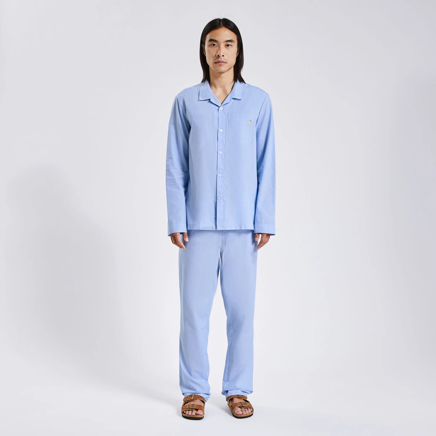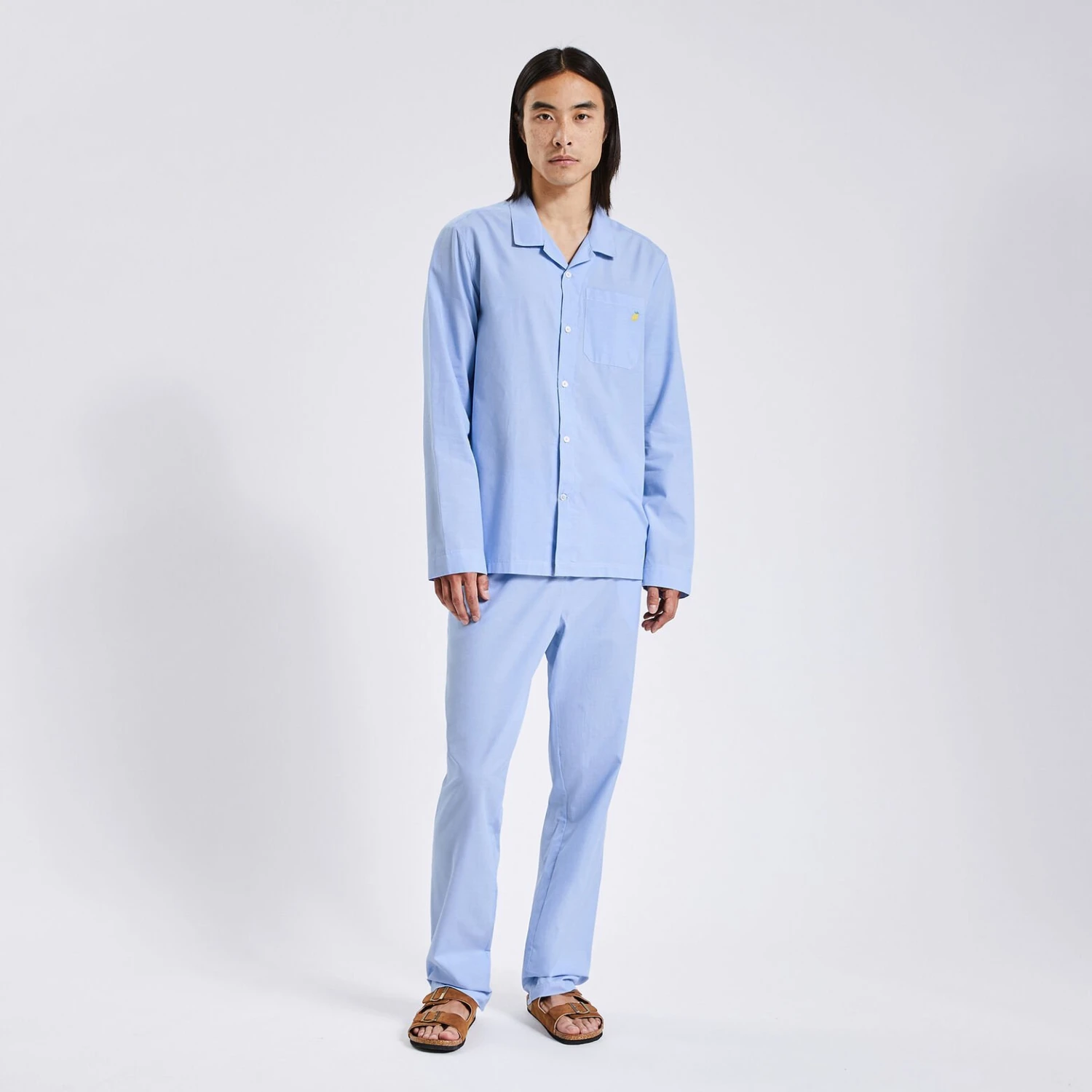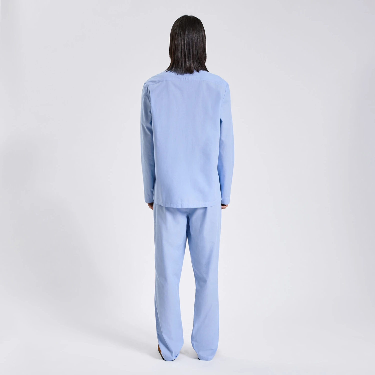Cet ensemble chemise et pantalon de pyjama unis est souple et confortable à porter la nuit. La taille élastique permet de ne pas être gêné pendant le sommeil.