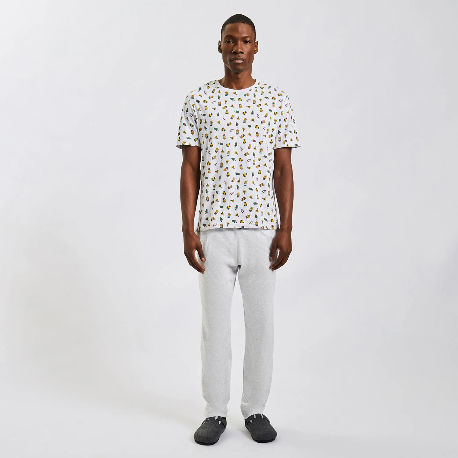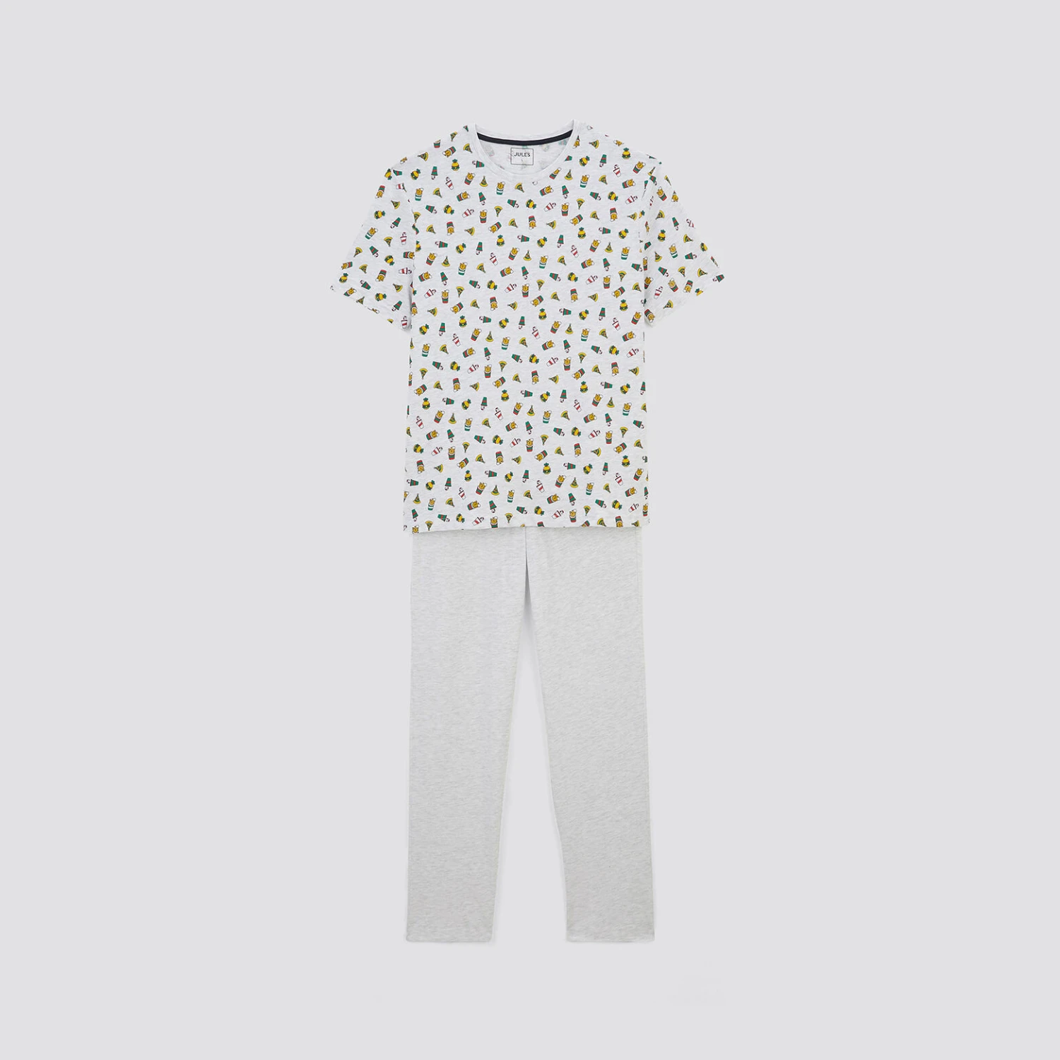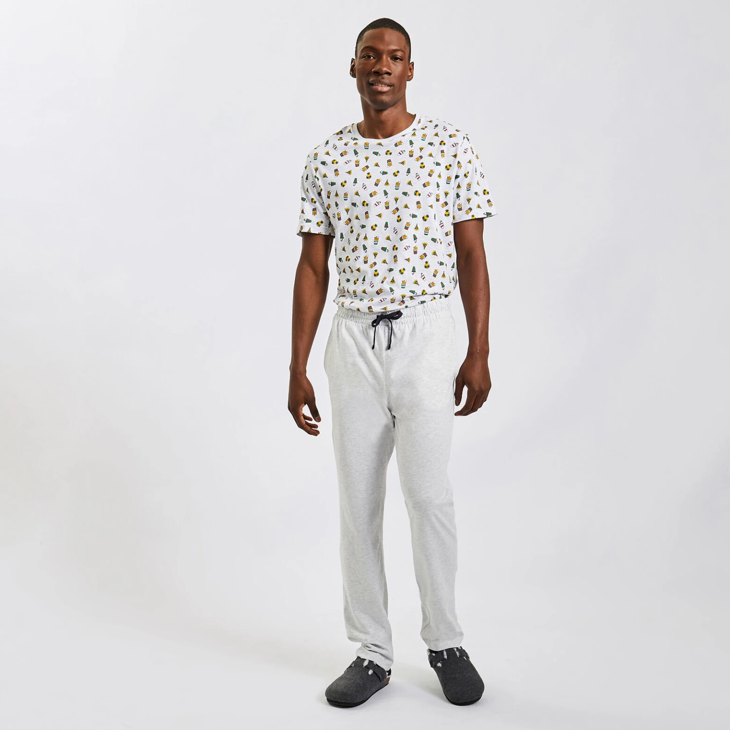 Ce pyjama est composé d¿un ensemble pantalon de jogging et tee-shirt fantaisie. Le pantalon est doté d¿une taille élastiquée avec cordon de serrage et de 2 poches avant. Le tee-shirt à manches courtes, imprimé fantaisie de Noël, possède un col rond et une coupe regular, pour un porté décontracté.