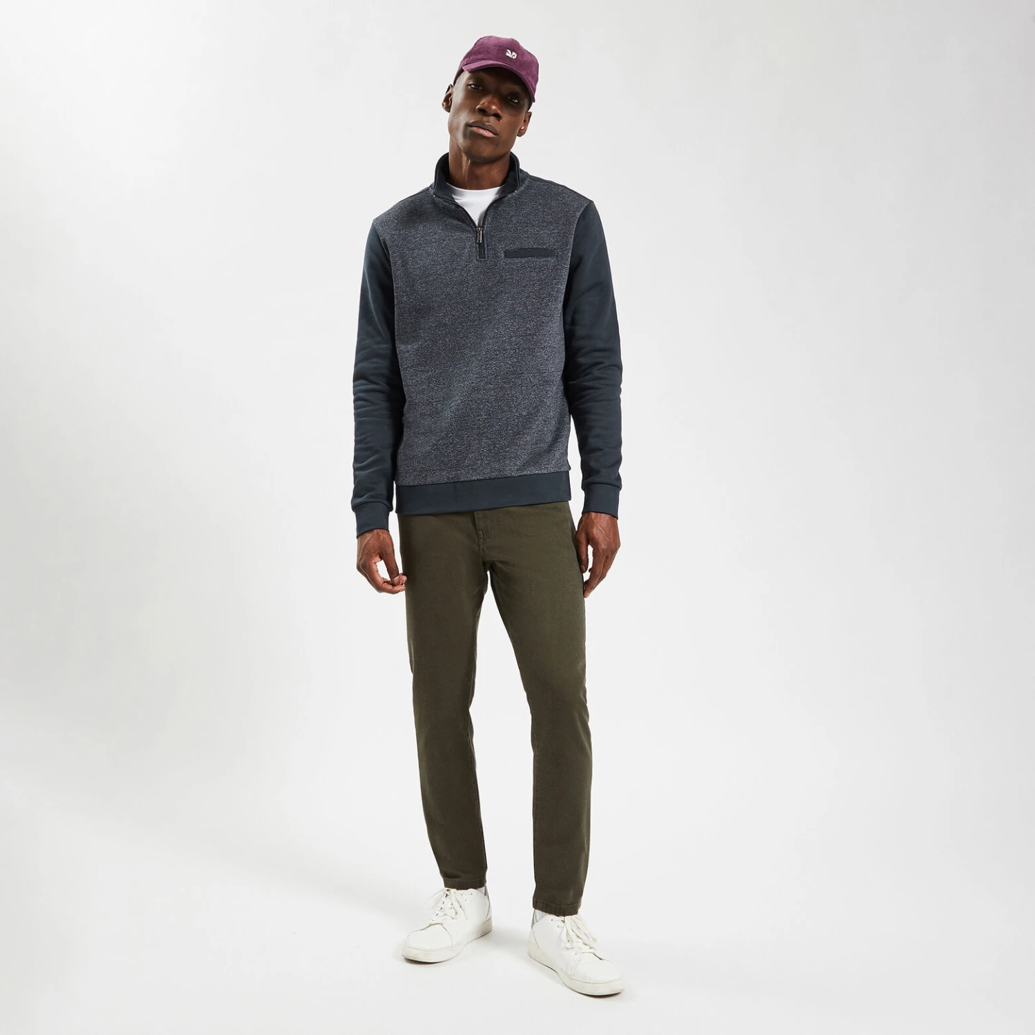 En mode cool avec un jean ou en mode élégant avec un chino, ce sweat col montant est toujours stylé !