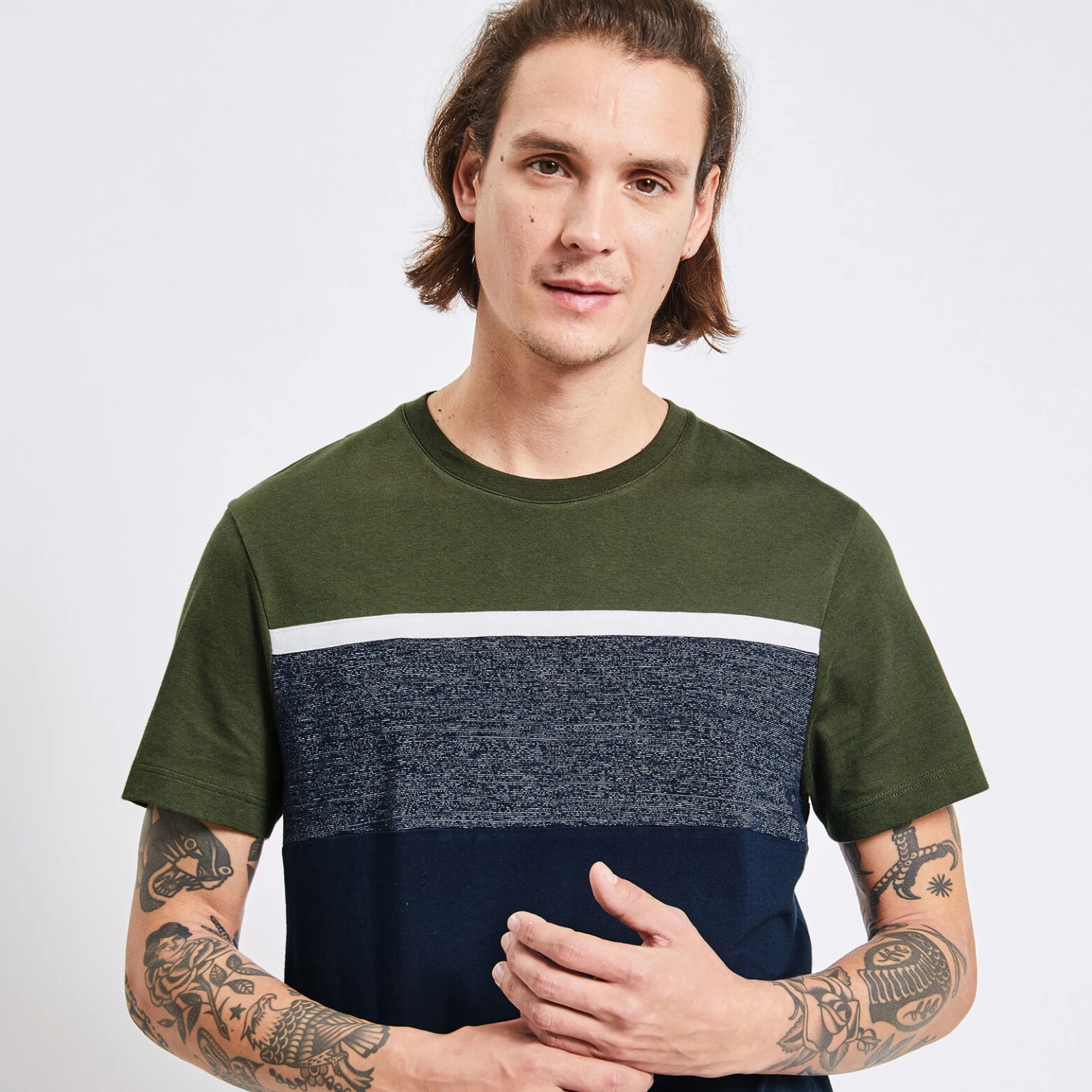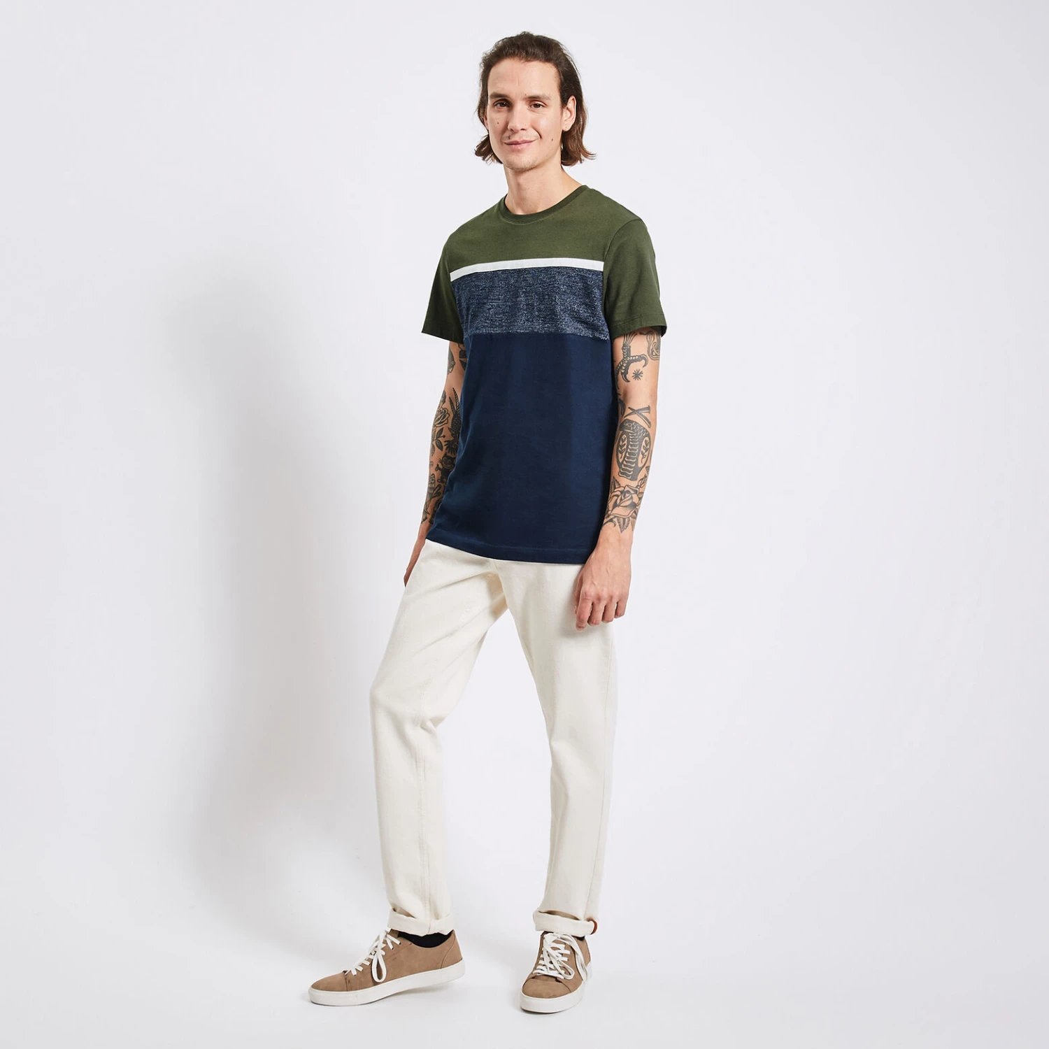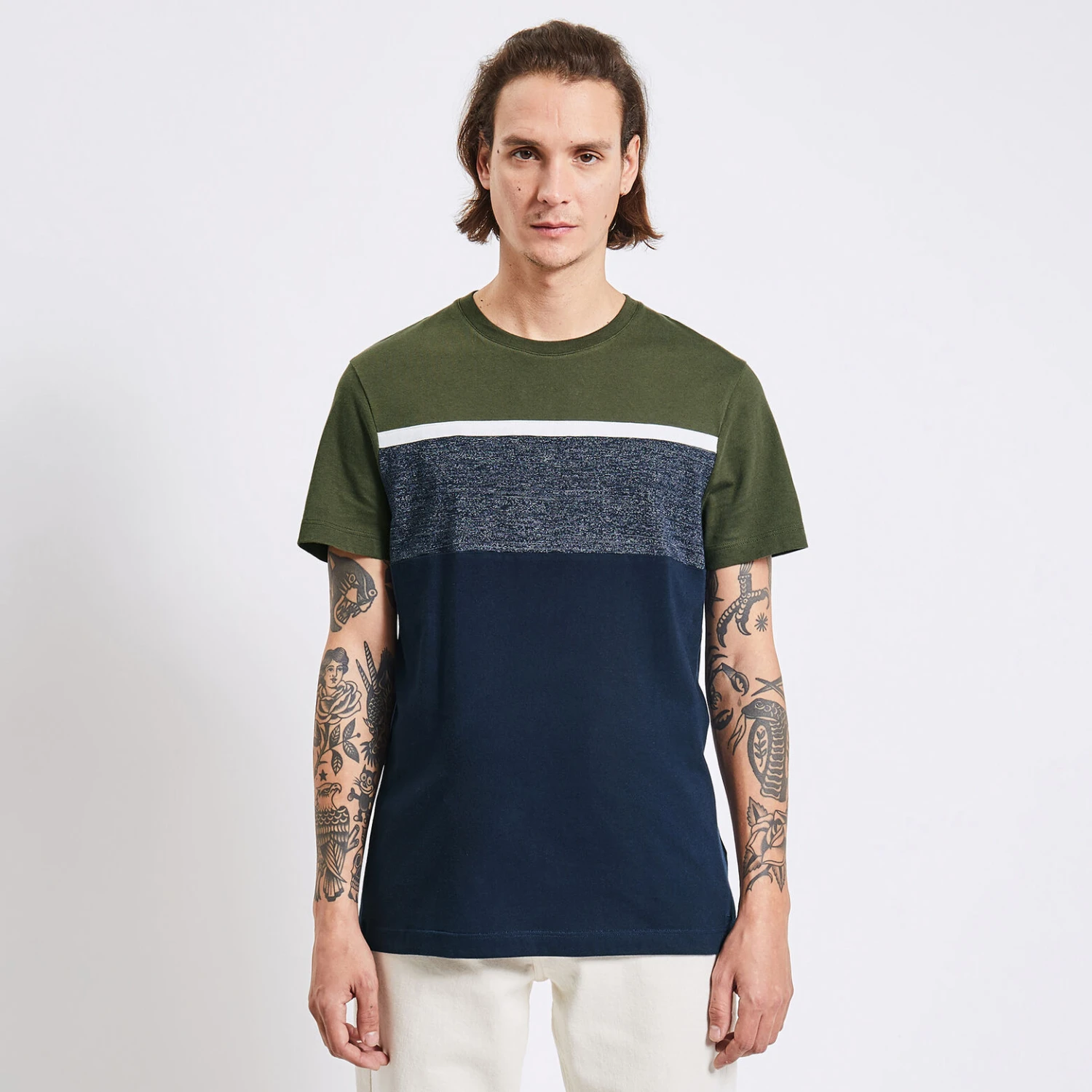 Indispensable dans le dressing masculin, ce tee-shirt à manches courtes colorblock est passe partout : avec un chino, un jean ou un bermuda, tout convient !