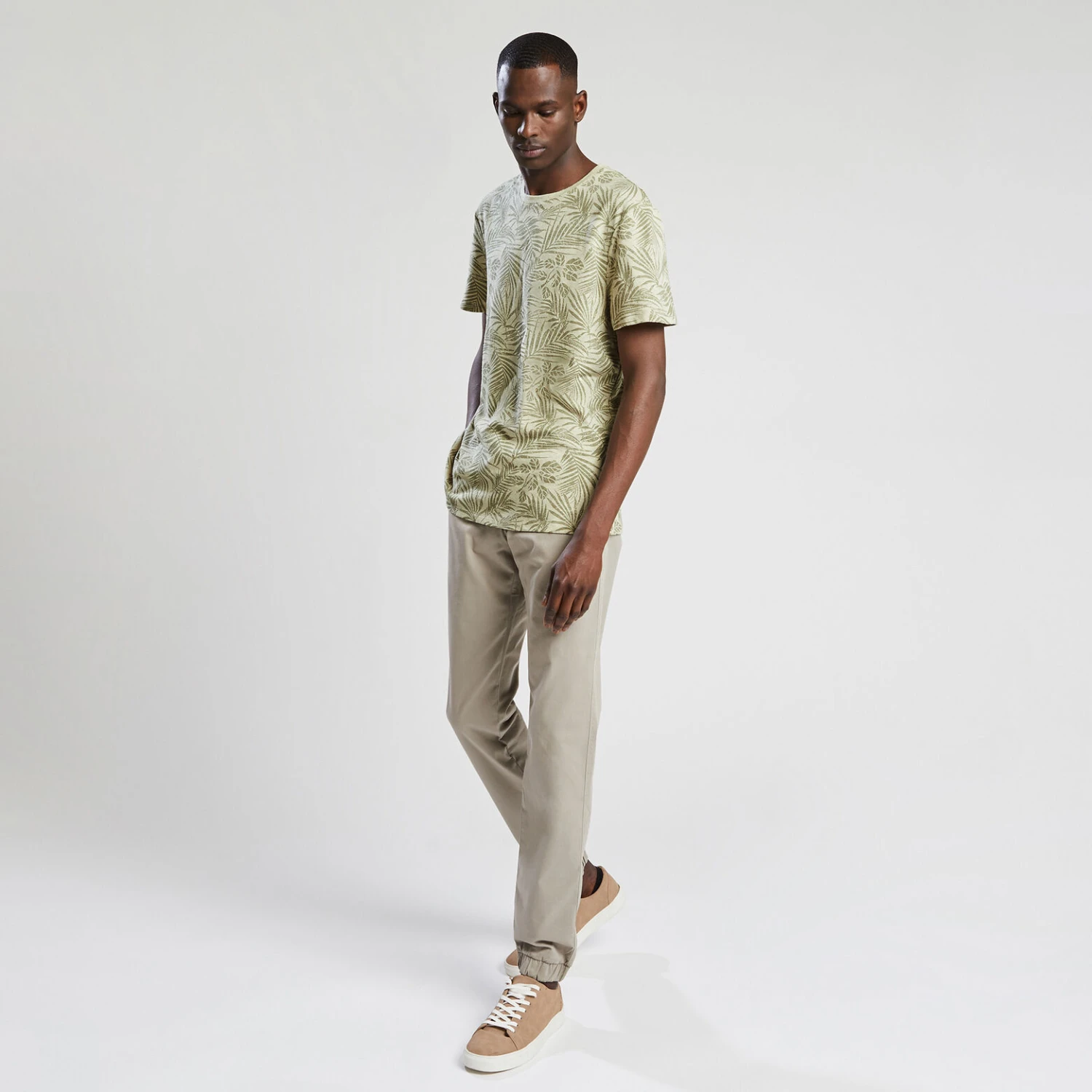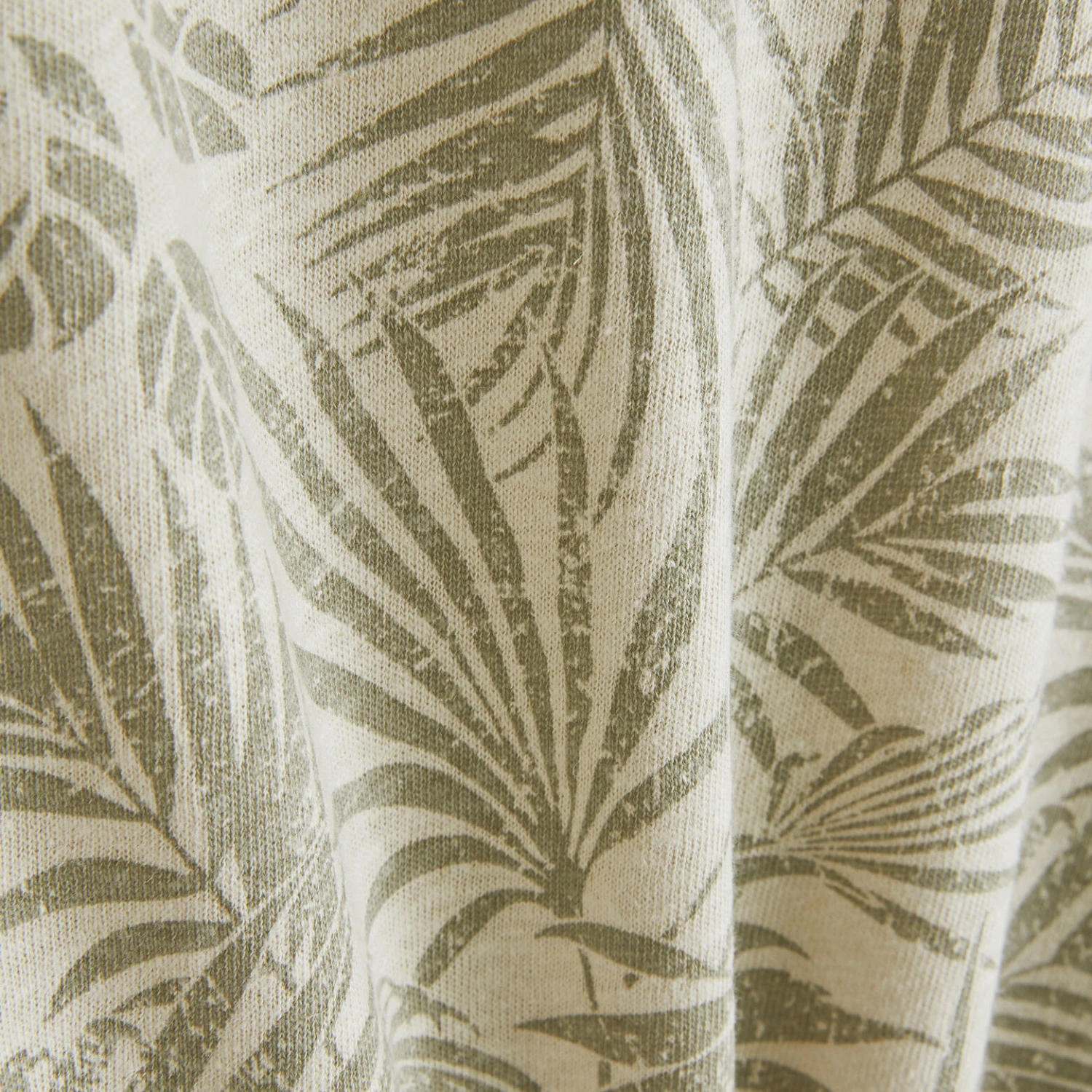 Ce tee shirt à manches courtes en coton lin imprimé feuillage fabriqué au Portugal possède un col rond et une coupe slim, pour un porté près du corps. Agréable à porter, il s’associe bien avec un short ou un bermuda.