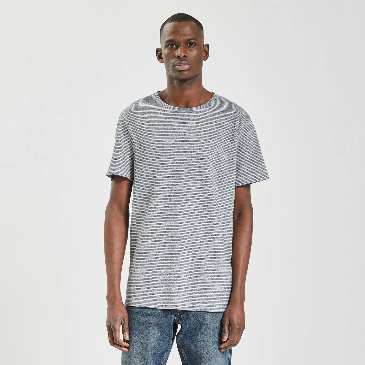Idéal pour l’été, ce tee-shirt en lin à micro rayures tissées est robuste et léger. Associé à un short ou un bermuda, il fera une tenue estivale parfaite !