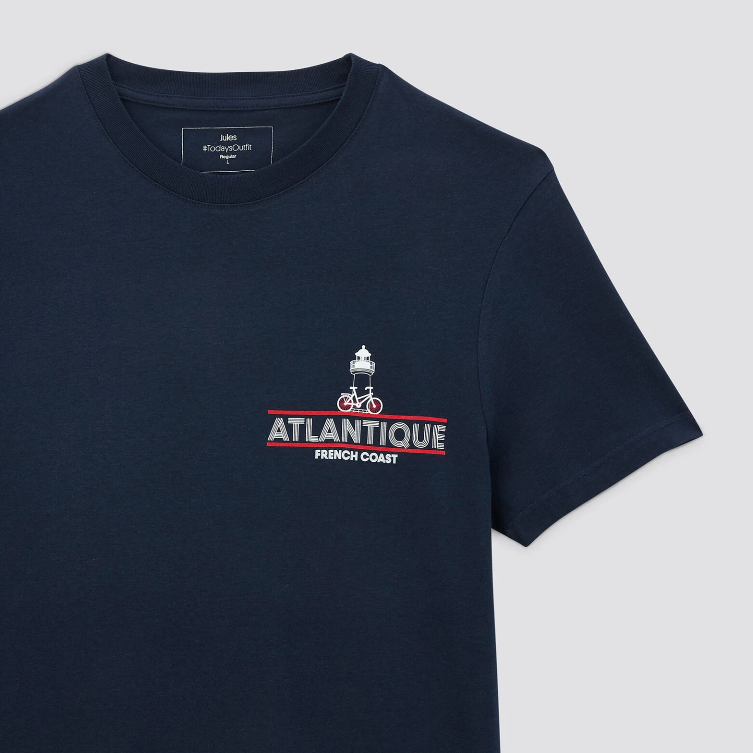 Ce tee shirt à manches courtes jules plage, avec imprimé poitrine atlantique, est doux et confortable à porter en toutes circonstances.